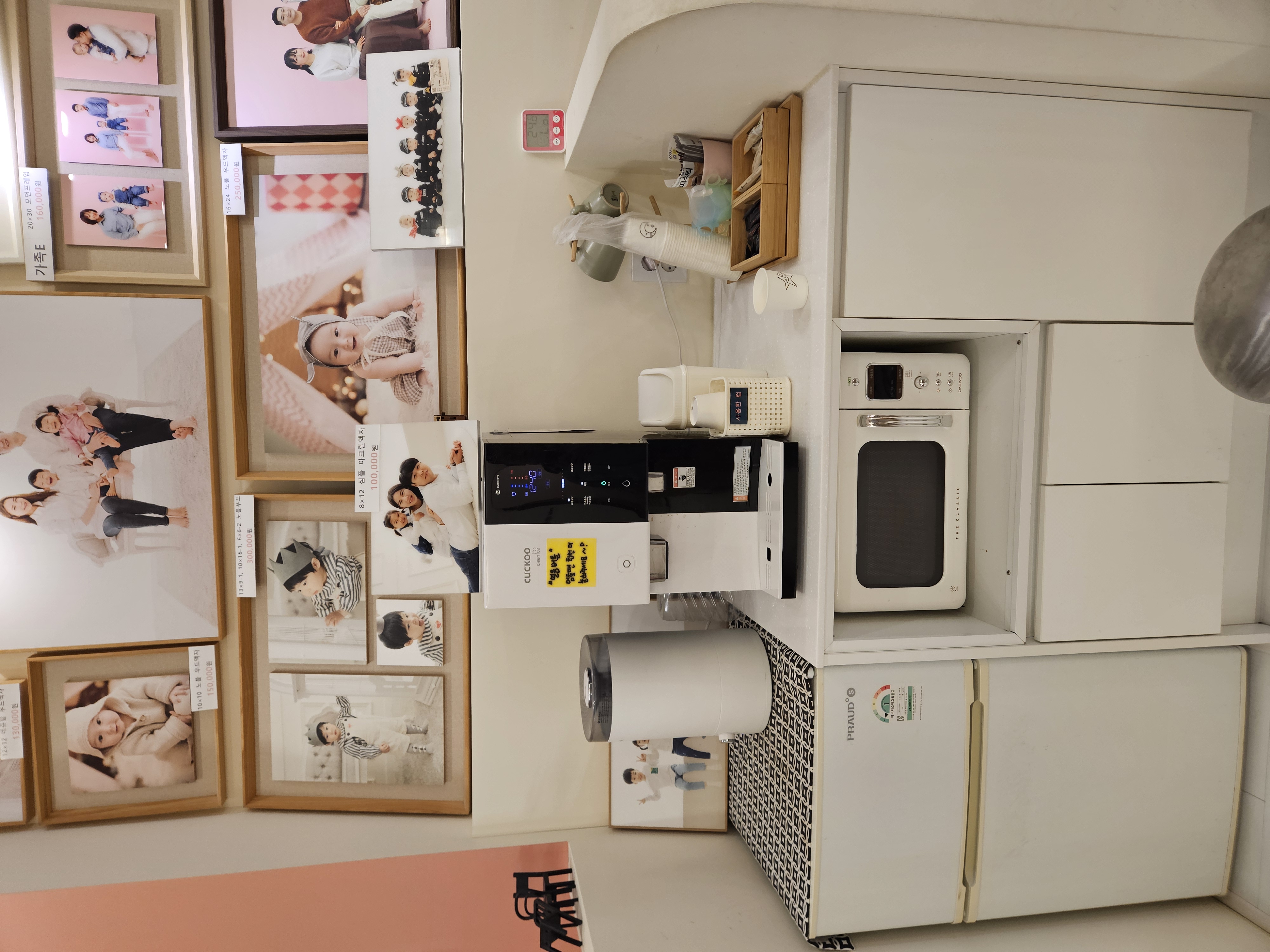 한복 고르는 곳 바로 옆에는 기저귀를 갈 수 있는 공간과 정수기, 전자레인지, 부모님들이 마실 수 있는 커피가 준비되어 있습니다.
