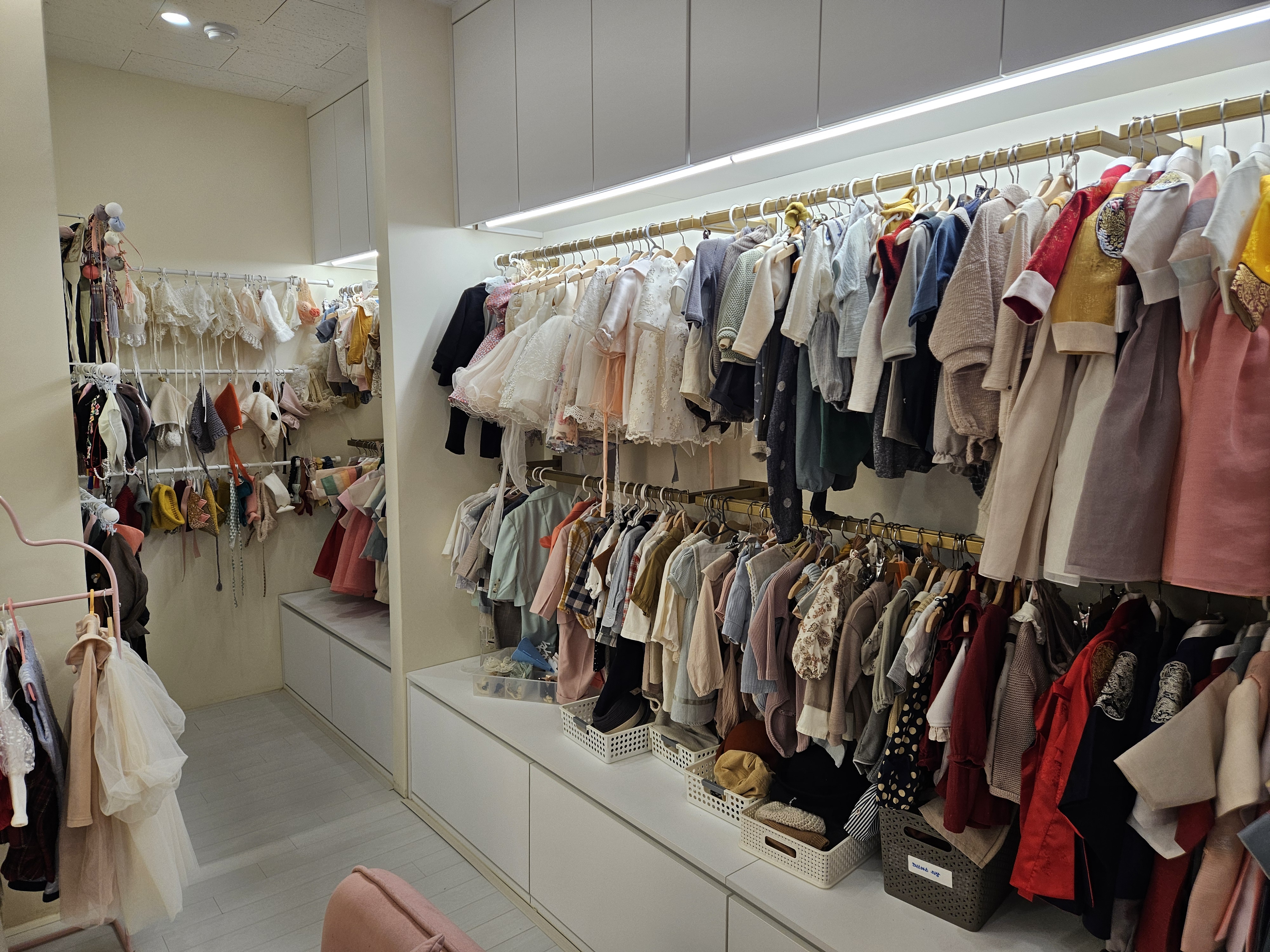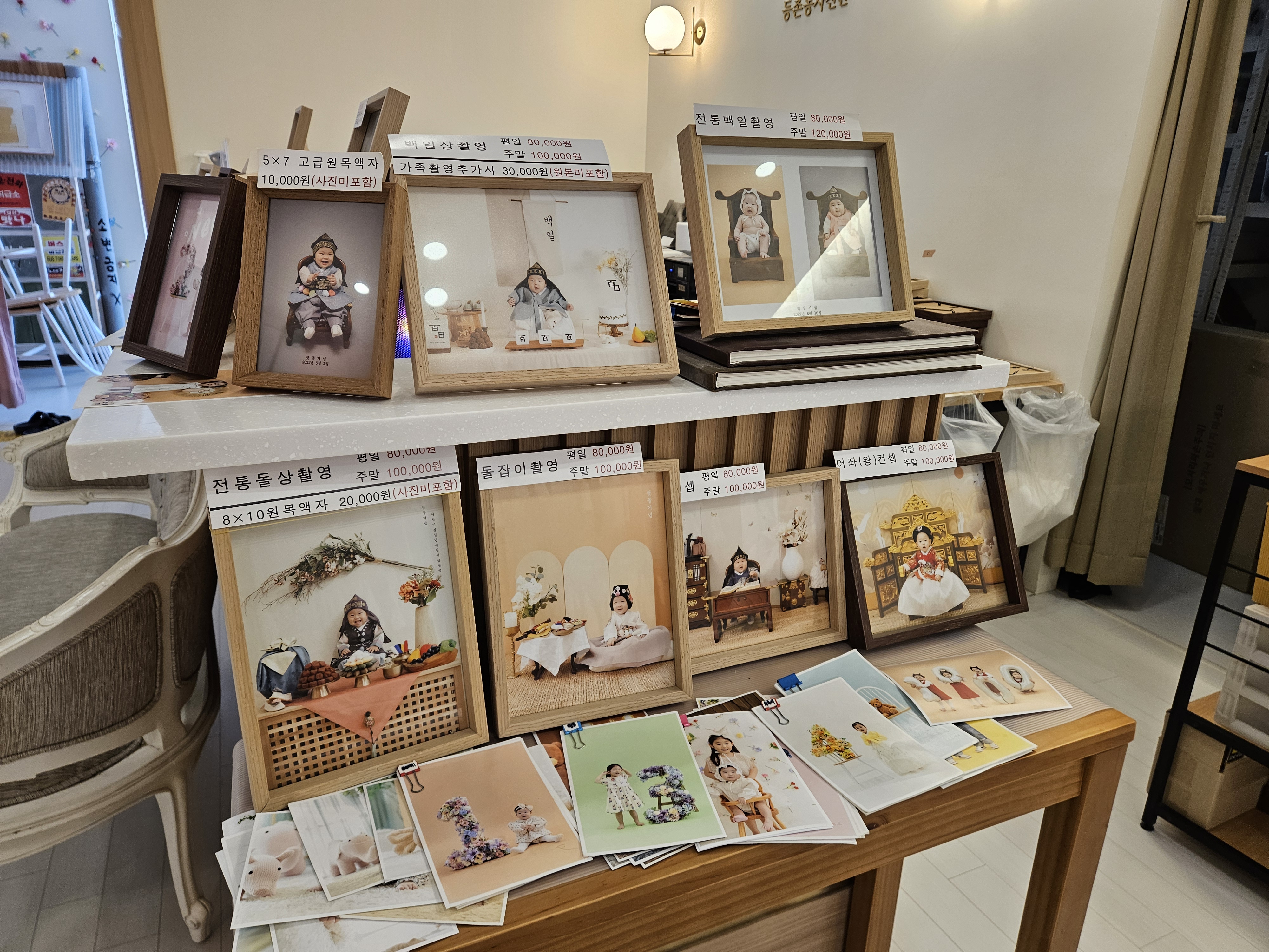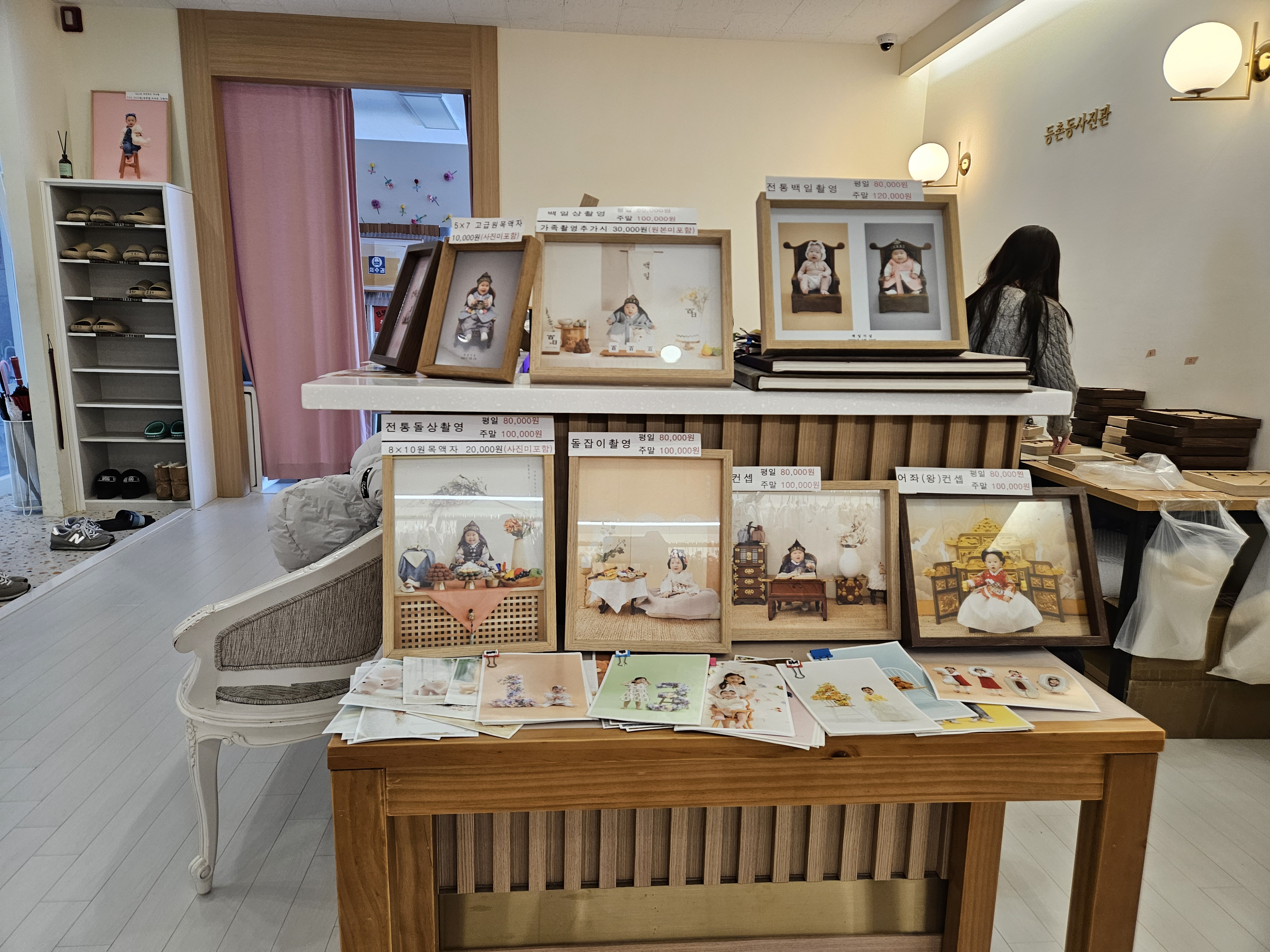 아기들 촬영을 하는 곳이라 그런지 다양한 한복들이 많이 있었습니다. 저희는 아내가 미리 생각해둔 한복 색상이 있어서 선택한 후에 촬영을 진행했습니다~
