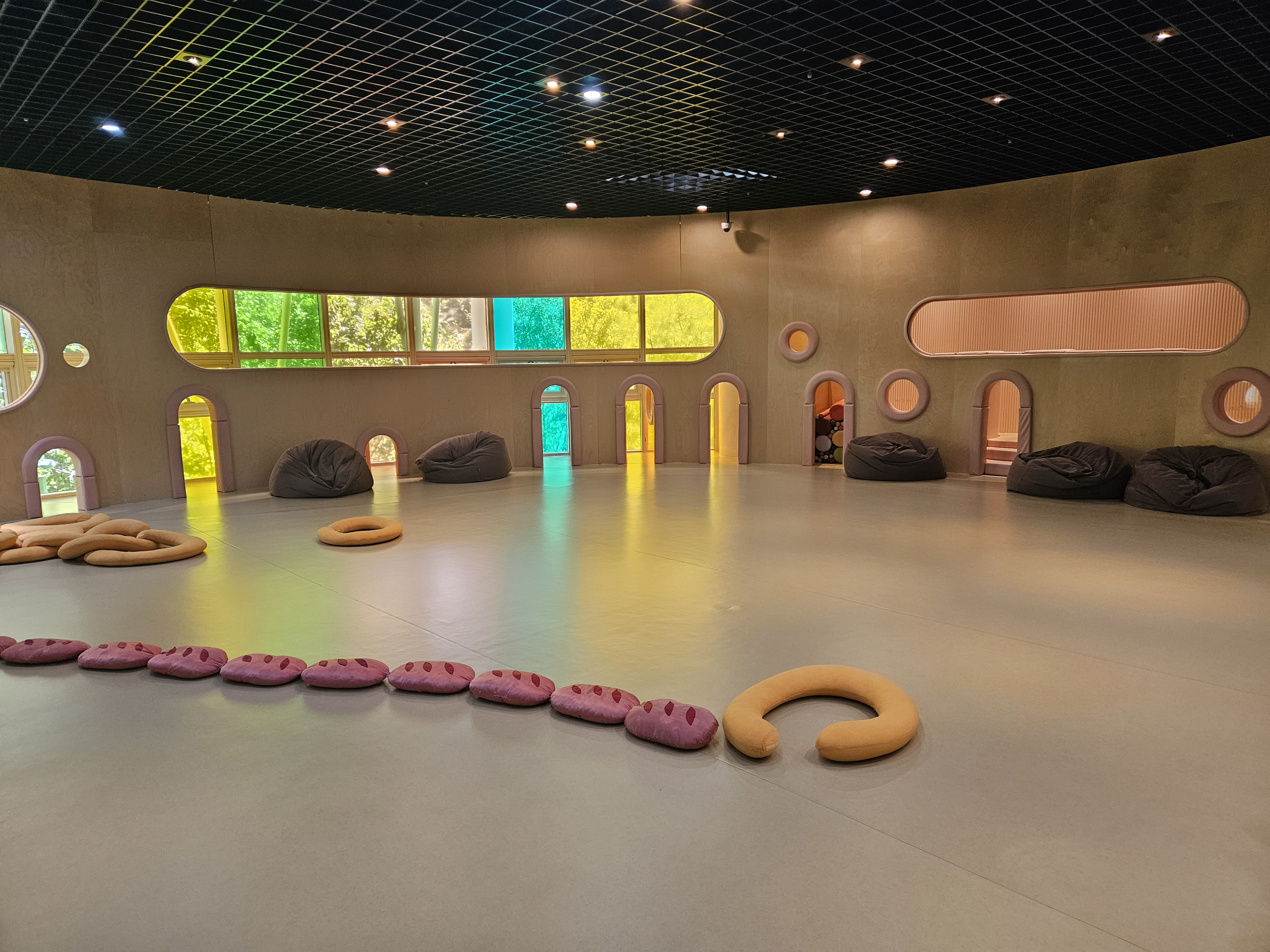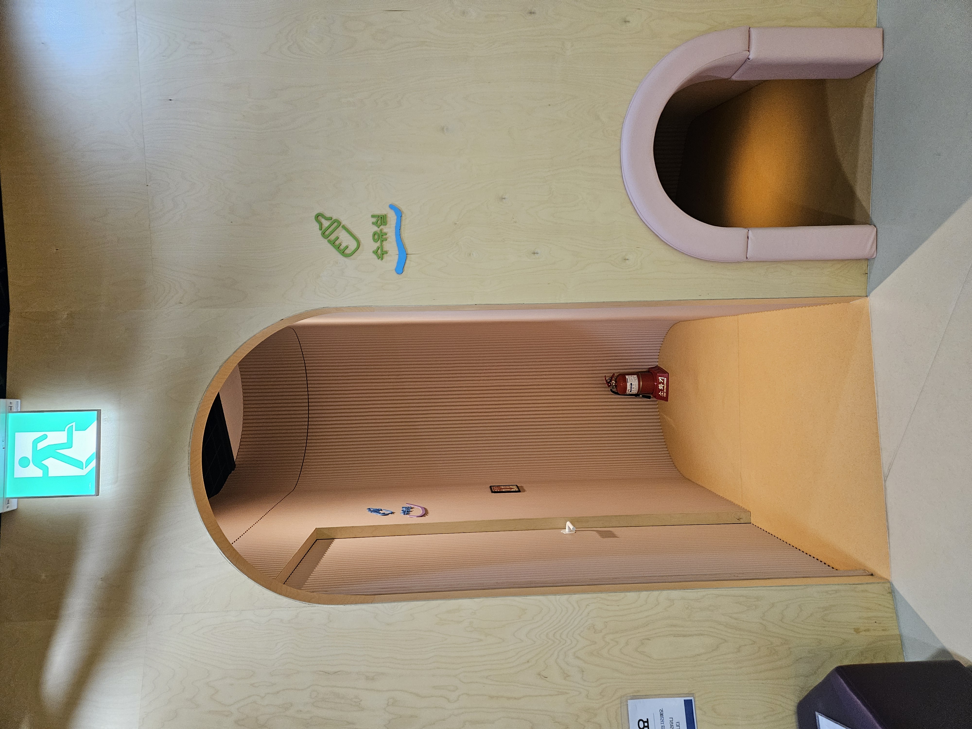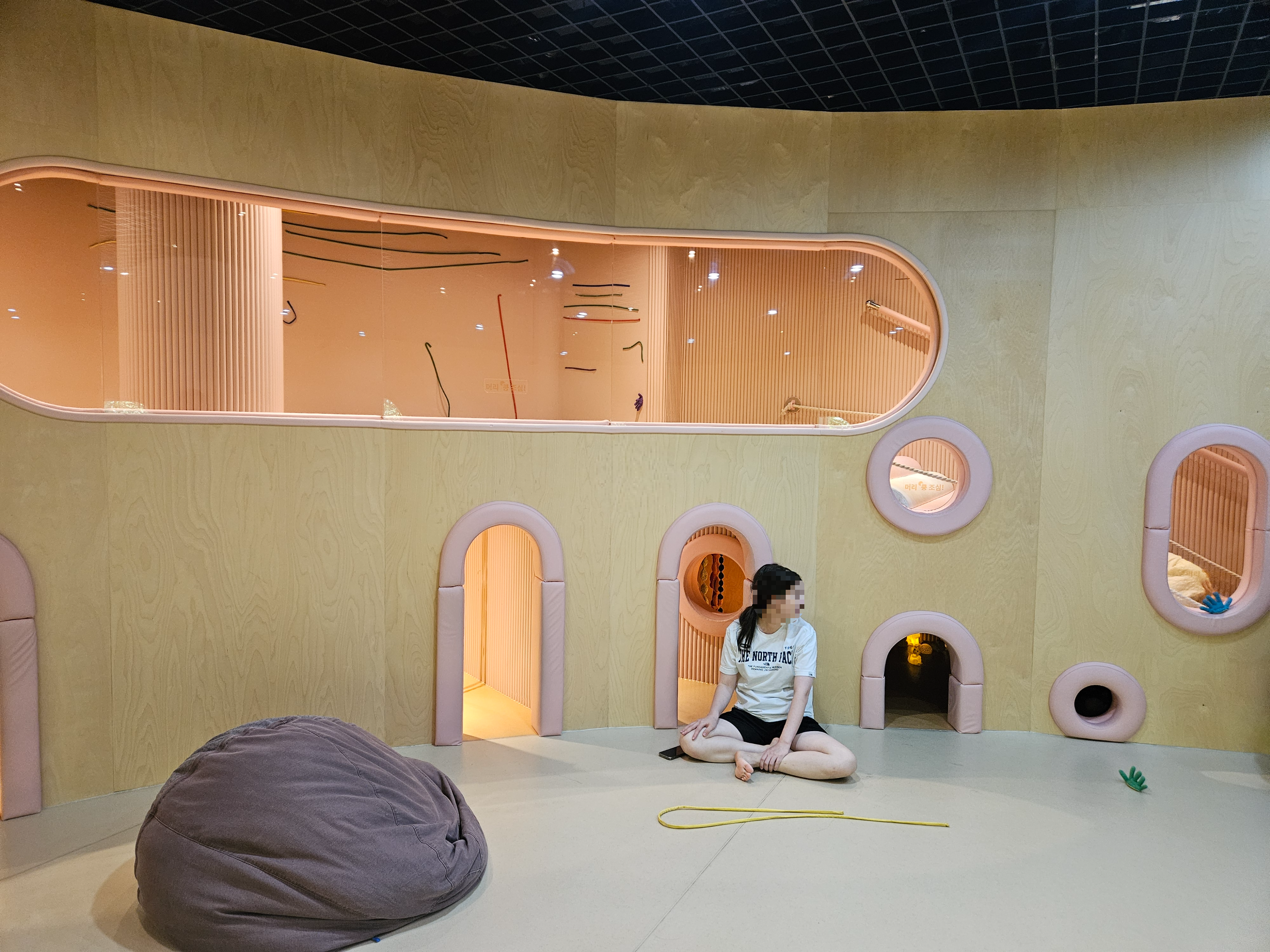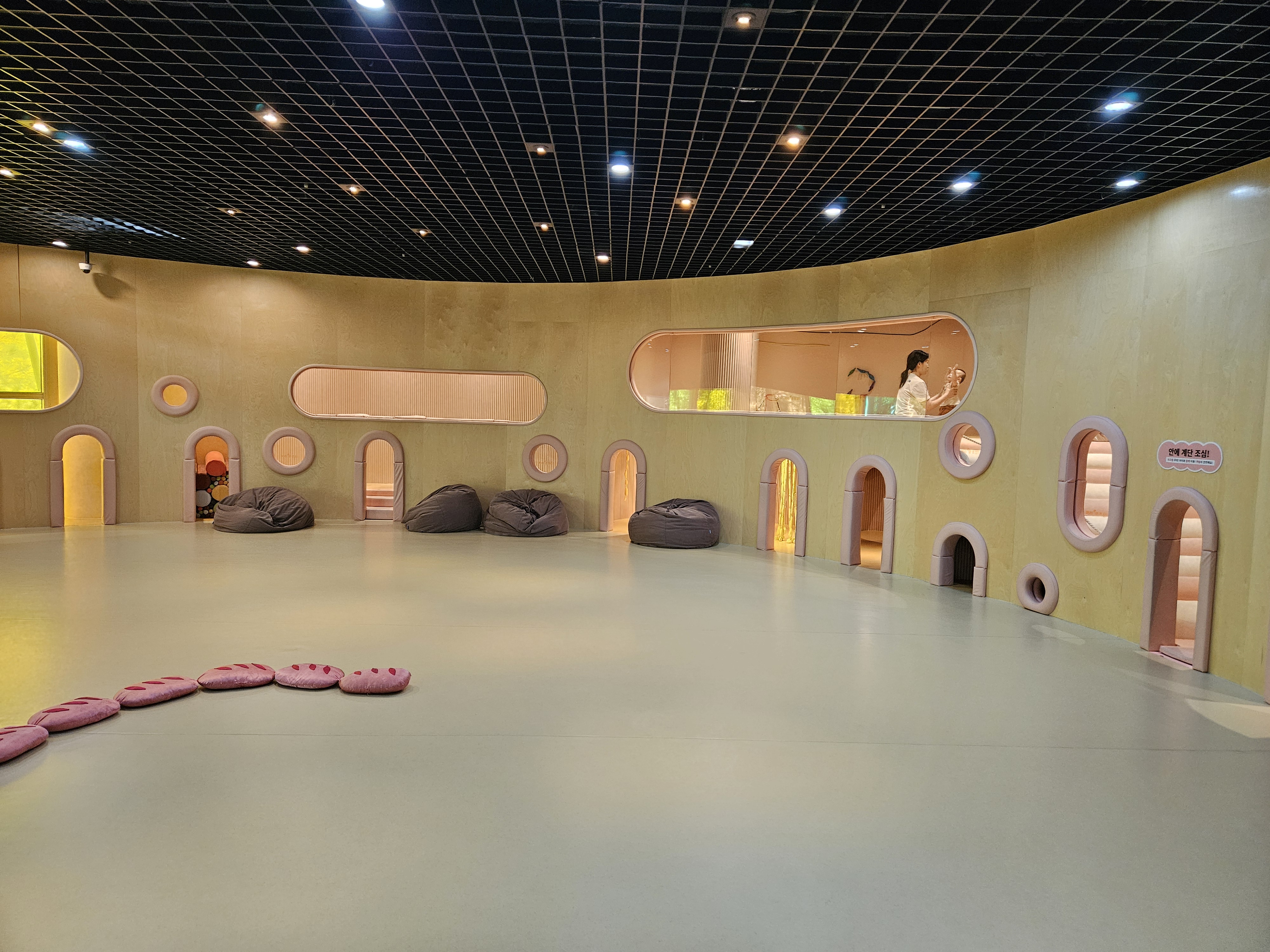 탁 트인 공간에 개미굴같이 조그만한 구멍의 입구들이 있고 조금씩 다른 테마의 방들이 있다. 이러한 조그만 입구들과 공간들이 아기들의 흥미를 자극할 것 같다. 주호도 처음에는 낯설어 하더니 집보다 넓은 공간에 와서 마음껏 기어다녔다.