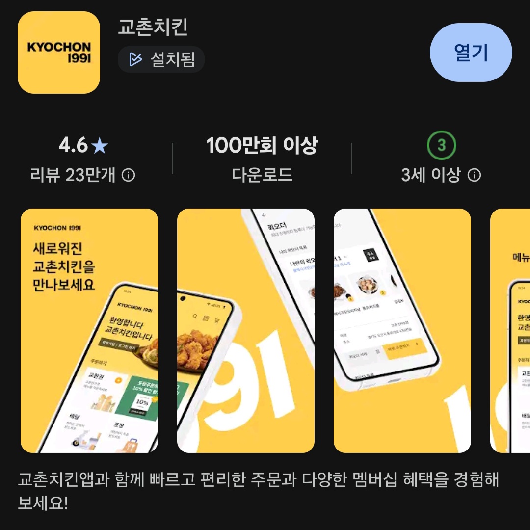 우선 교촌치킨 어플리케이션을 핸드폰으로 다운받아야한다. 그리고 회원가입도 해야하는 번거로움이 있다. 이 과정이 너무 귀찮다면 그냥 할인 없이 주문해도 무관하다. 그러나 어렵지 않고 계속 교촌치킨을 먹는다면 귀찮지만 한번만 고생하면 될 것 같다.