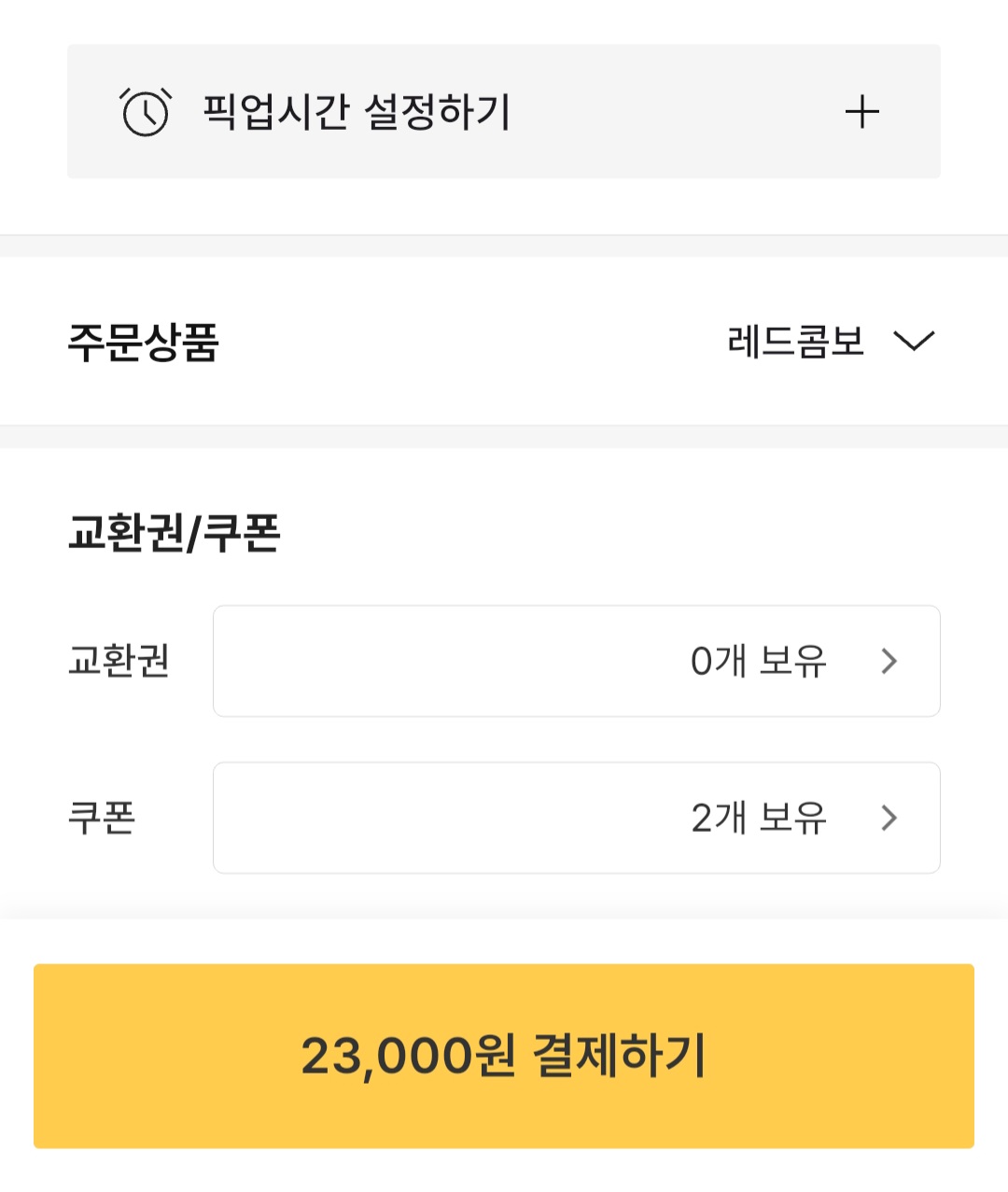 주문시에는 쿠폰을 눌러서 꼭 포장 10%할인 쿠폰을 사용해야 한다. 그러면 결제금액에서 10% 할인 된 금액으로 구매할 수 있다. 나도 쿠폰을 사용하고 나니 10% 할인 된 금액인 20,700원으로 결제가 가능했다.