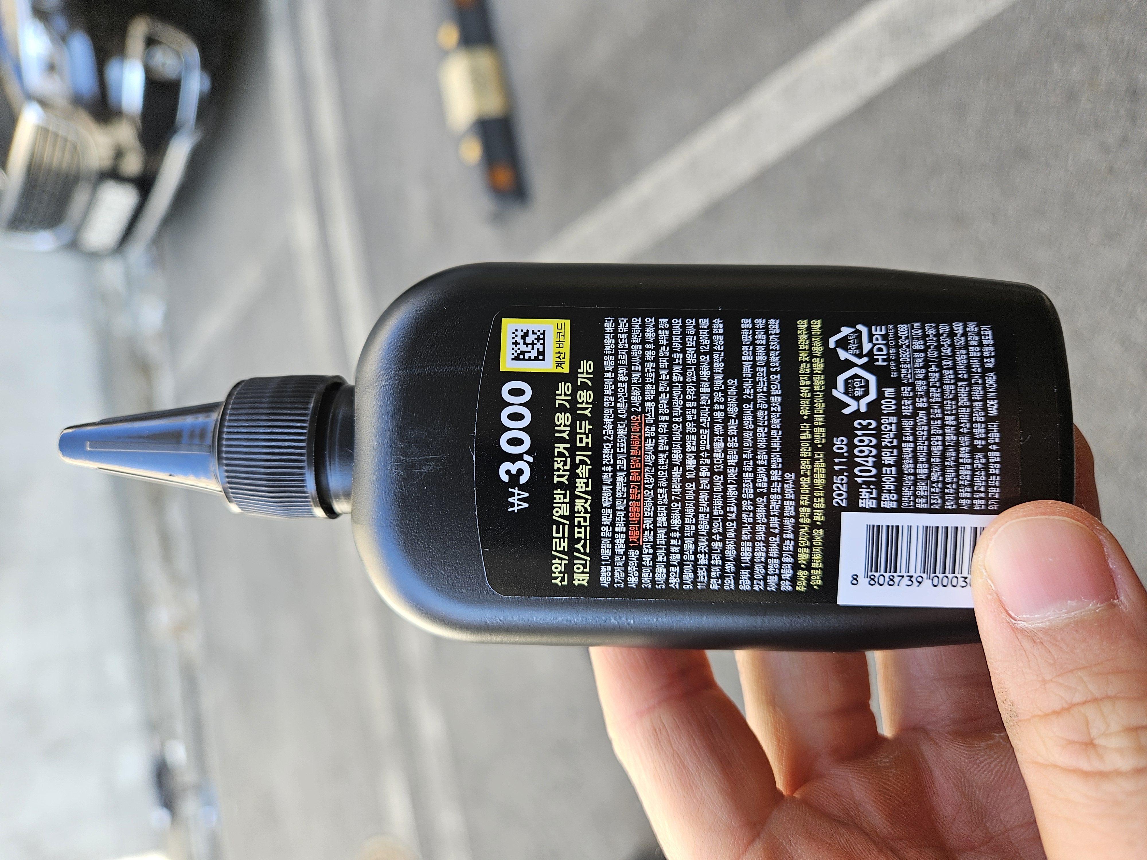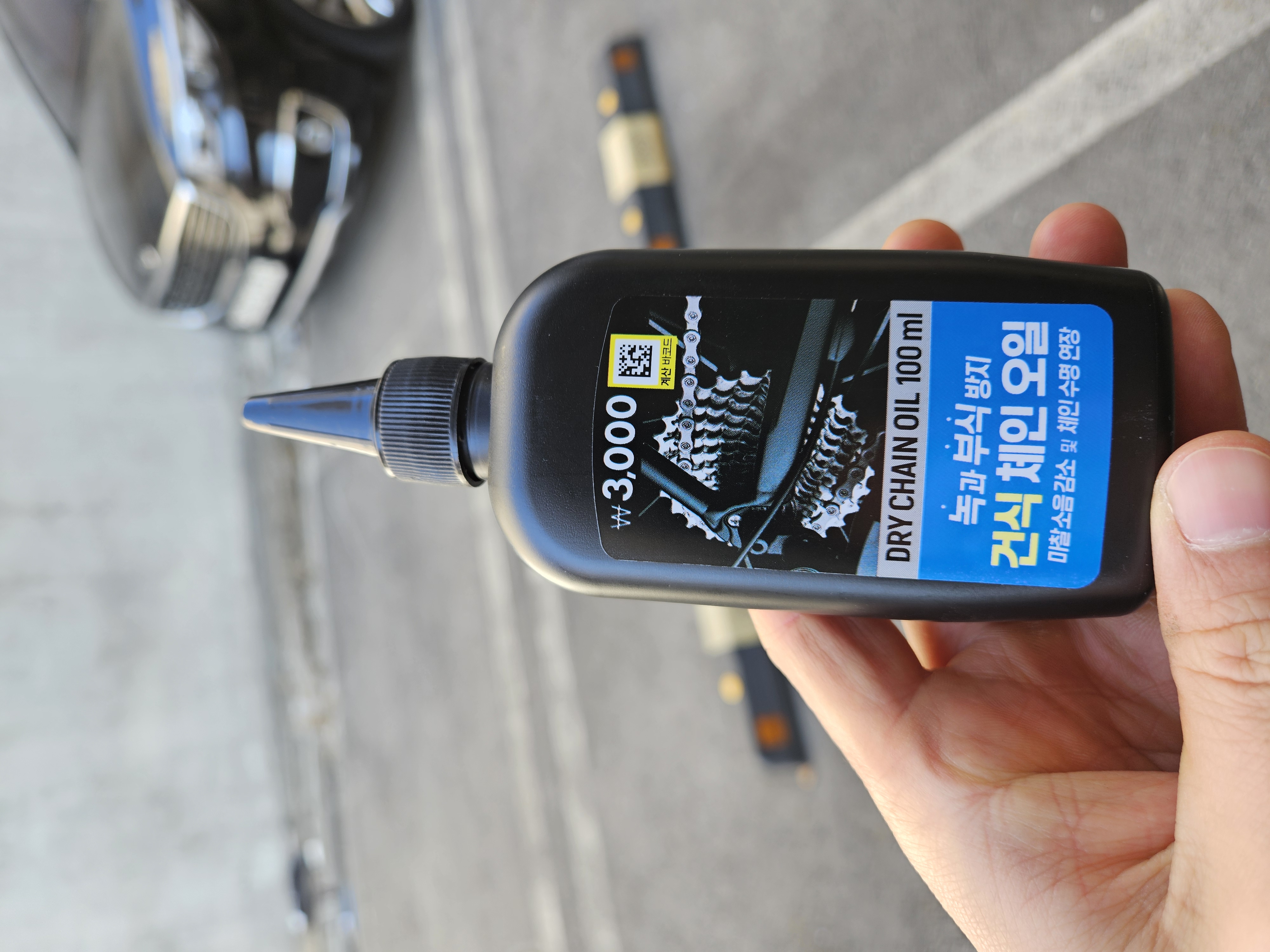 체인의 녹과 부식을 방지하는 건식 체인오일인데 용량은 100ml, 가격은 3,000원이었다.
