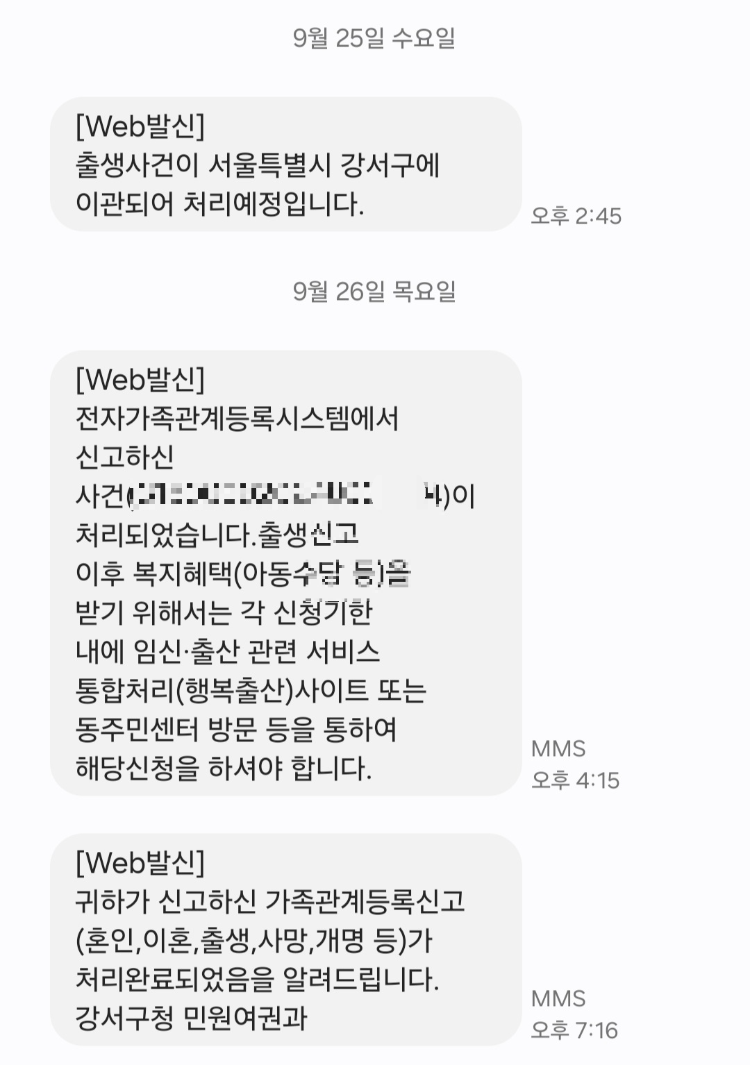 이렇게 여유로운 휴일 아침을 모닝빵과 커피로 시작했습니다. 그래도 배는 여전히 고프기에 집에 잠깐 들러서 아침을 간단히 해 먹었습니다. 장모님이 주신 일회용 국거리를 냄비에 끓여서 밥이랑 같이 말아먹었습니다. 저는 밥을 맛을 느끼려고 먹기보다는 살아가는 에너지원으로 먹기 때문에 저 같은 사람에게는 시간 많이 안 들고 밥을 간단히 먹을 수 있는 일회용 국거리가 제격이었습니다. 밥을 먹고 빨래와 집안일을 잠깐 했습니다. 아내가 출산을 했다 보니 많은 분들이 택배로 선물들을 보내주셔서 뜯고 박스정리 하느라 시간을 보냈습니다. 먹으라고 과일을 보내주신 분들도 계셨는데 추석부터 시작해서 냉장고에 너무 많은 과일이 있어서 언제 이걸 다 먹나라는 생각이 들었습니다. 아내랑 나눠먹어야지 썩기 전에 먹을 수 있을 것 같아서 과일 몇 개와 과도를 싸서 조리원으로 다시 향했습니다. 오늘은 쉬는 날이라 밀려있던 출산 후에 신청할 것들을 신청했습니다. 일단 주호 출생신고를 온라인으로 했는데 인터넷에 '출생신고'라고 검색하면 '대법원 전자가족관계등록시스템'에서 간단하게 할 수 있었습니다. 요즘은 간편 인증으로 개인인증이 잘되어 있는데 출생신고는 공인인증서가 필요했습니다. 제 공인인증서가 만료가 된 지 꽤 되었기 때문에 보안카드를 찾아서 새로 발급한 후에 출생신고를 완료했습니다.