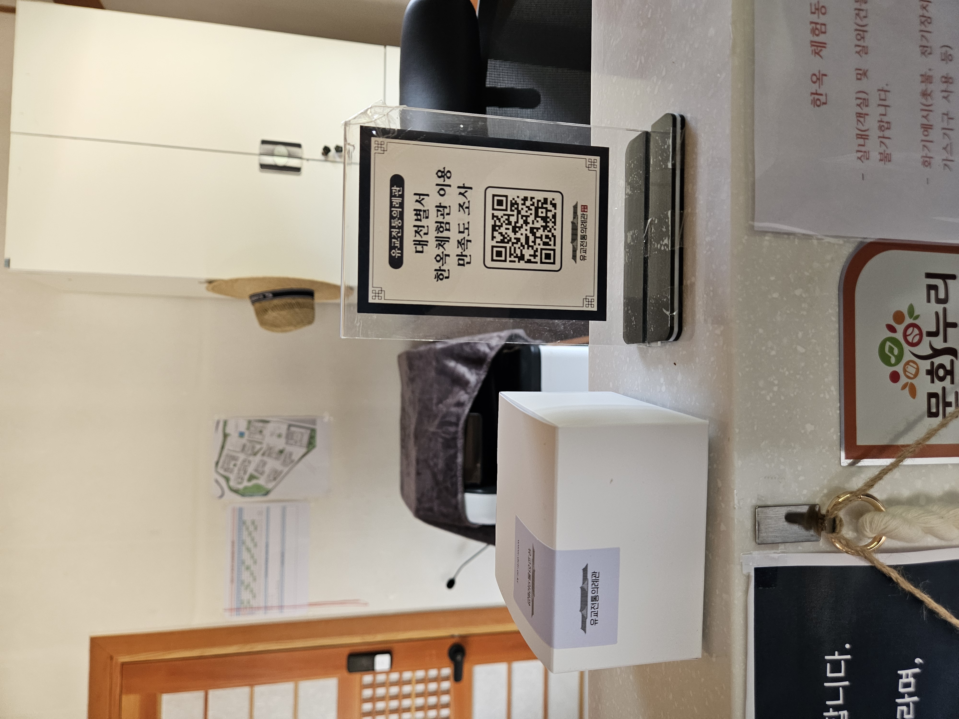 만들어진지가 별로 안된 숙소라서 설문조사도 진행을 하여 계속 개선을 하려고 하는데 설문조사에 참여하면 작은 선물도 주시더라구요. 아기와 함께 묵을 대전 숙소를 찾으신다면 대전별서를 강력히 추천드립니다!
