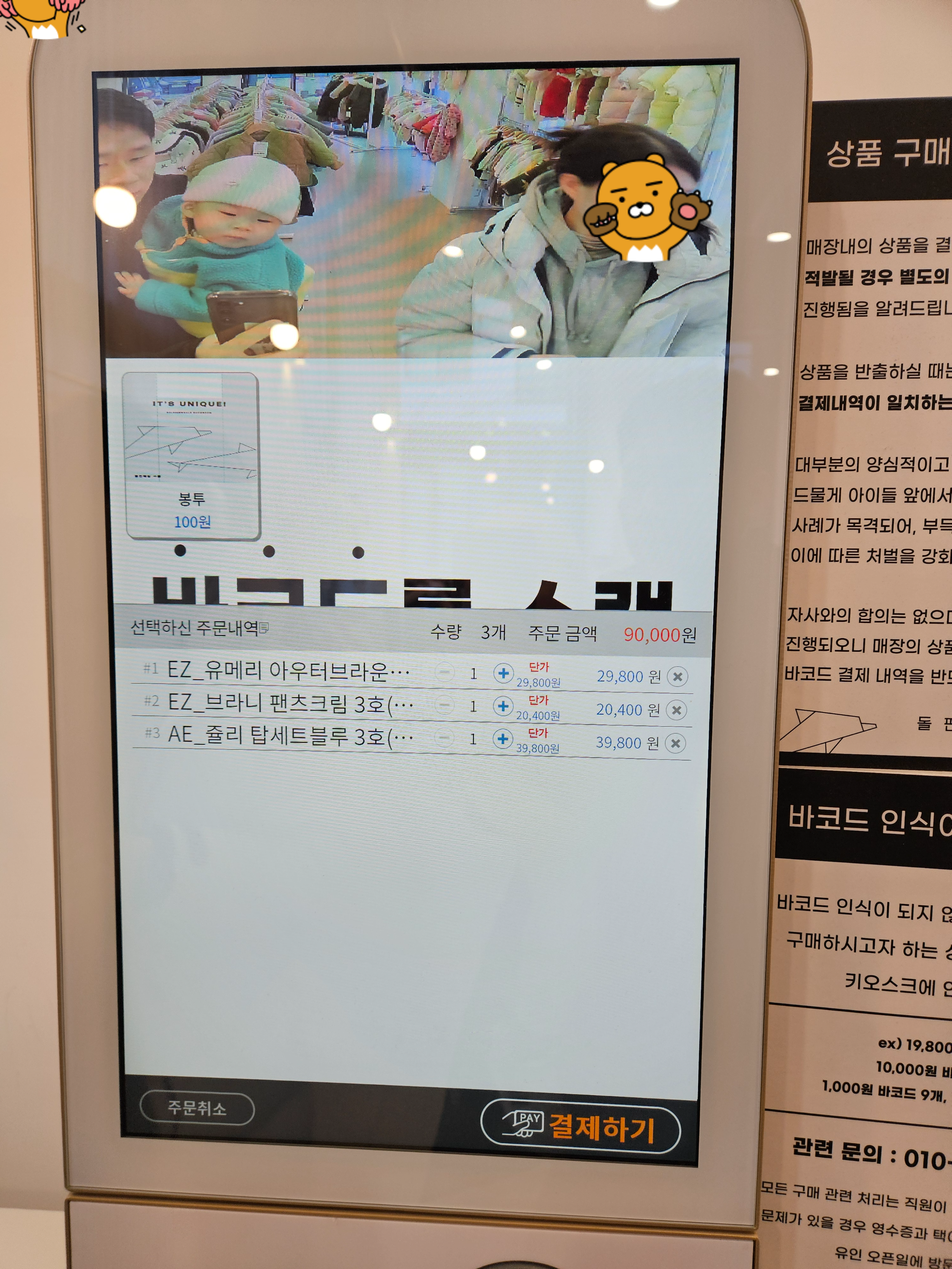 옷 세벌가격은 9만 원, 아우터가 있는 것을 감안하면 그리 비싼 금액은 아닌 것 같다는 생각이 들었다.