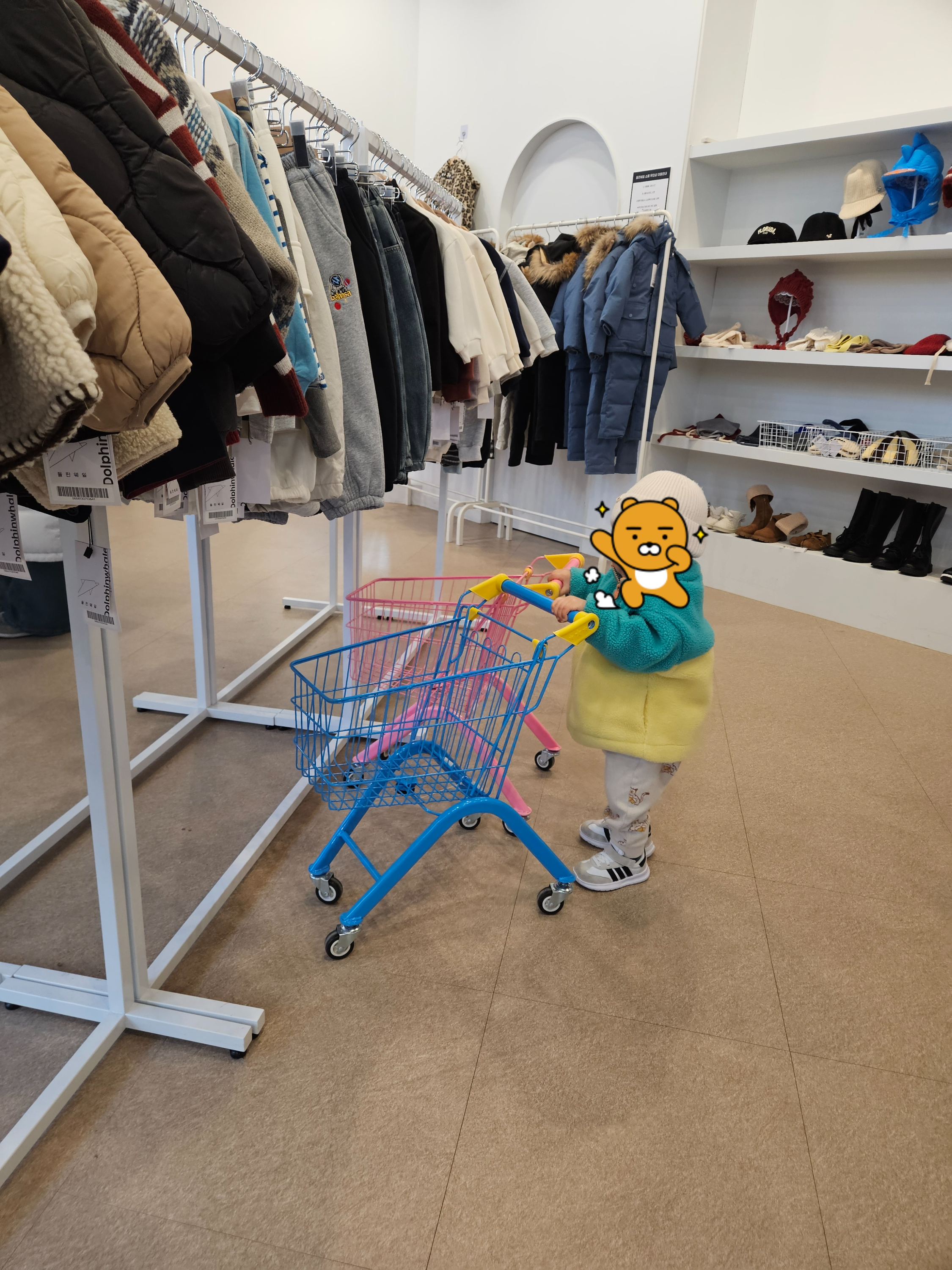 들어가자마자 아기자기한 아기옷들이 쫙 진열되어 있다.