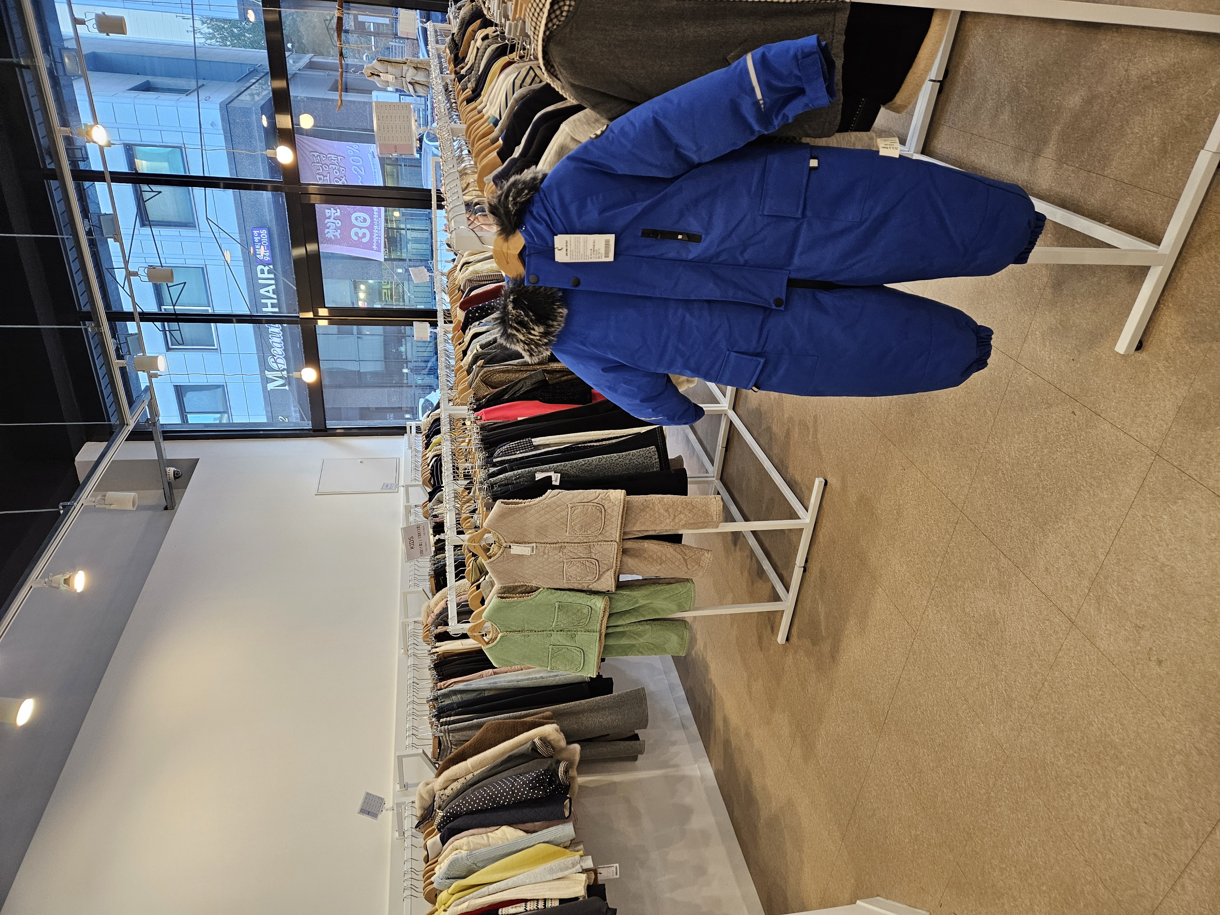 아무래도 겨울이다보니 패딩과 패딩바지 같은 겨울 옷들이 많이 진열되어 있었다.