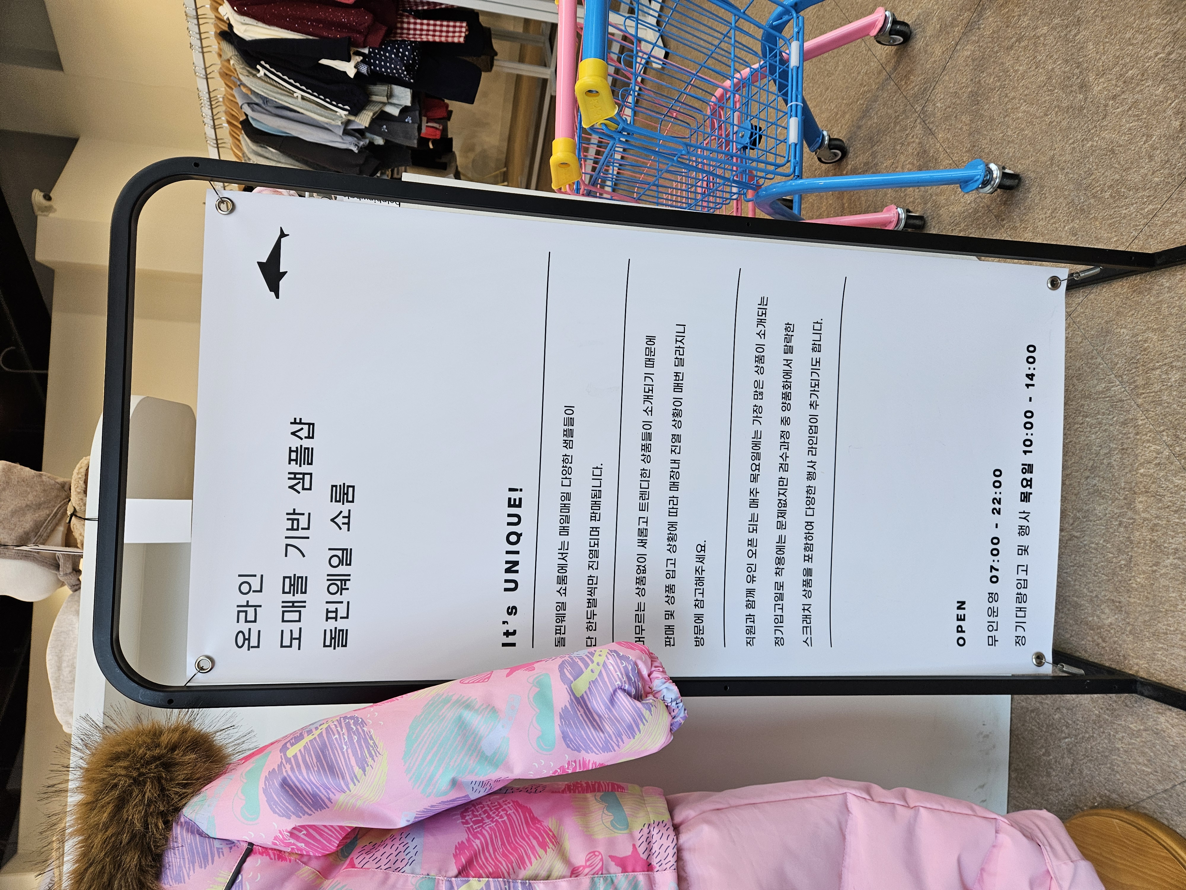 돌핀웨일 운정점은 무인으로 운영되고 목요일 10시 ~ 14시에 정기대량 입고 및 행사가 진행이 된다.