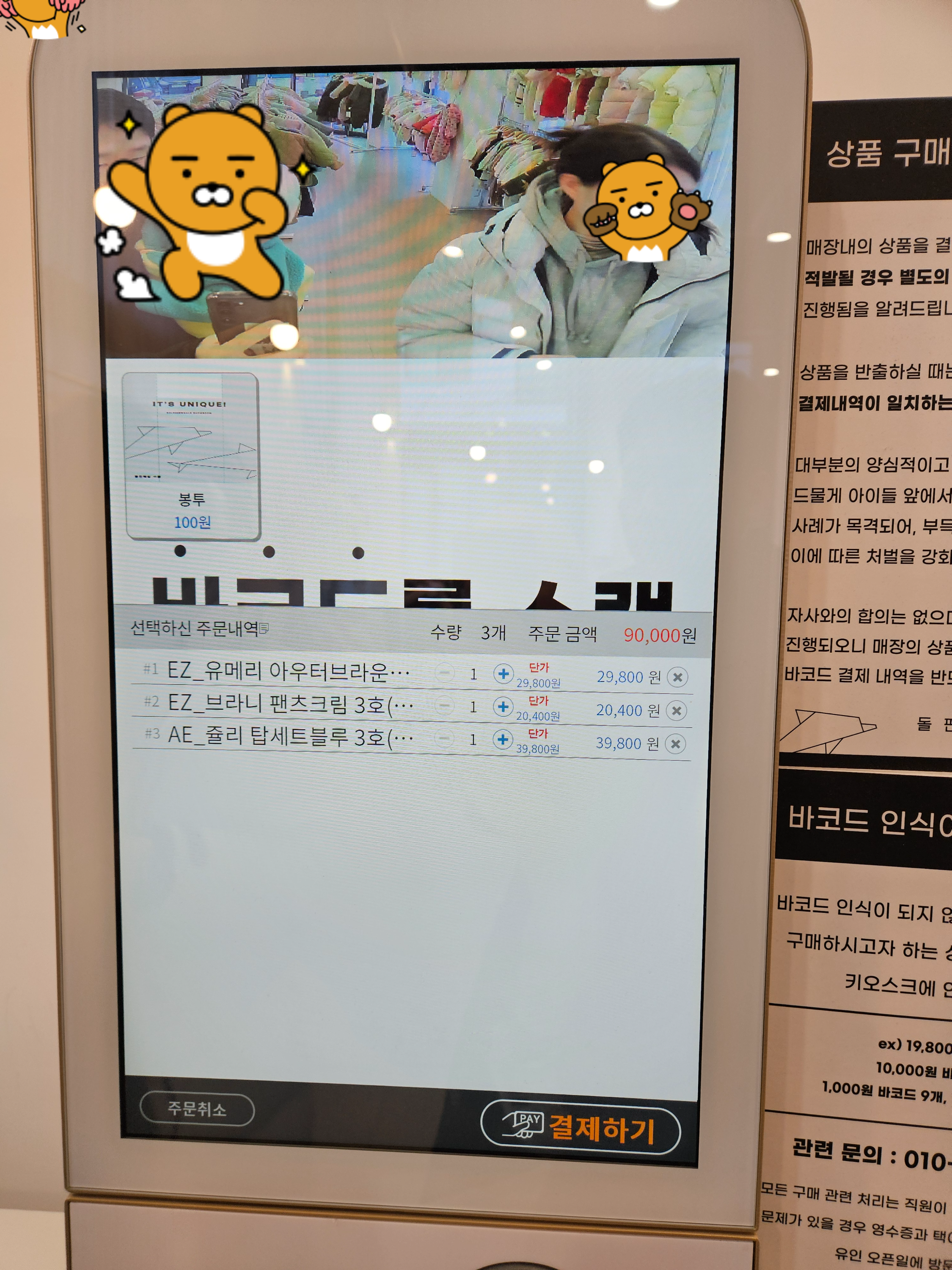 옷 세벌가격은 9만 원, 아우터가 있는 것을 감안하면 그리 비싼 금액은 아닌 것 같다는 생각이 들었다.