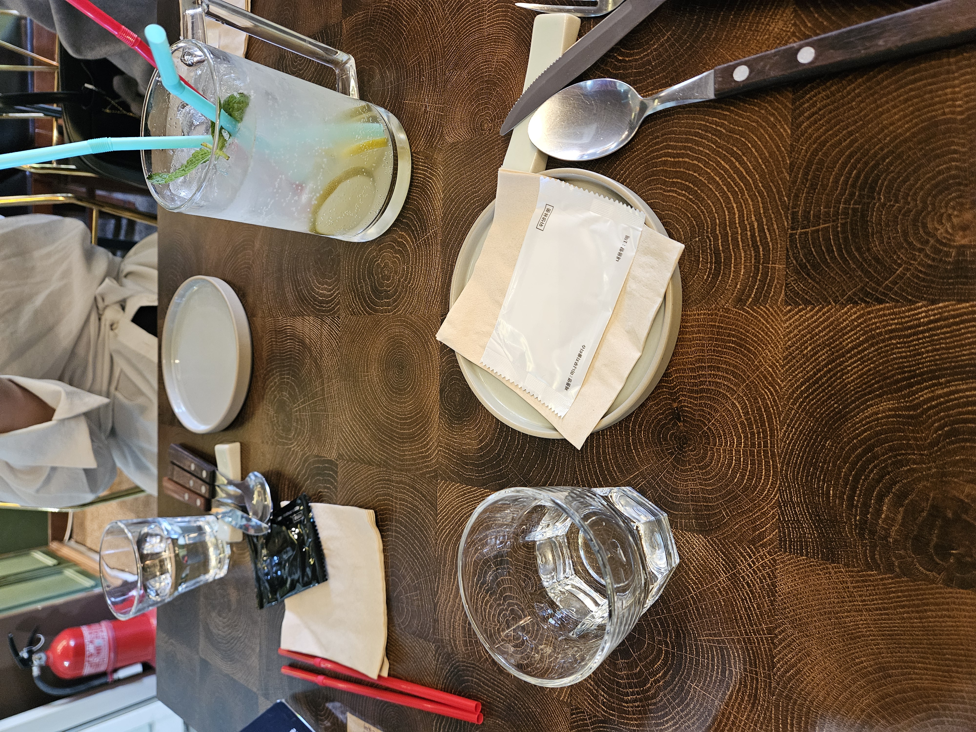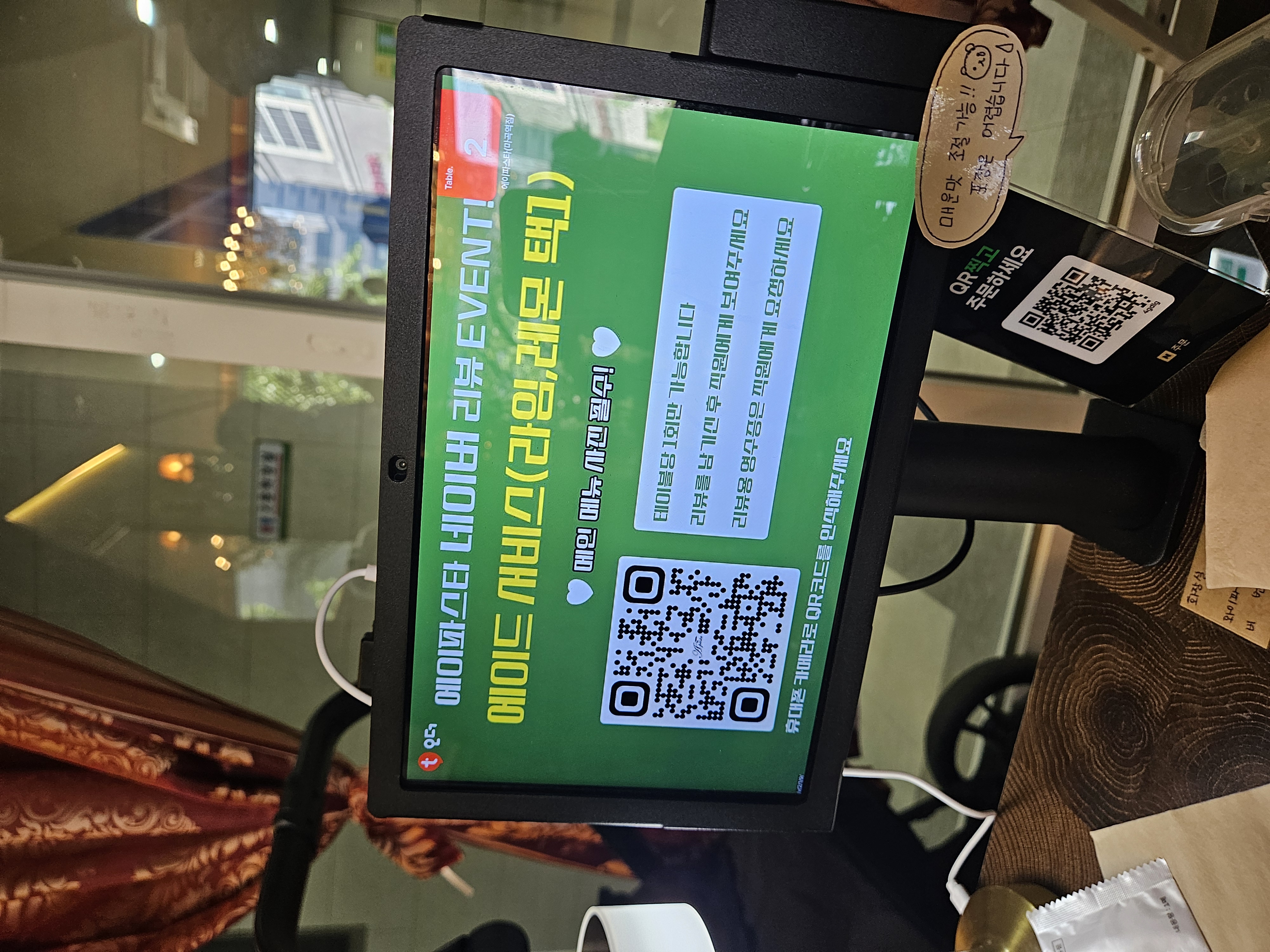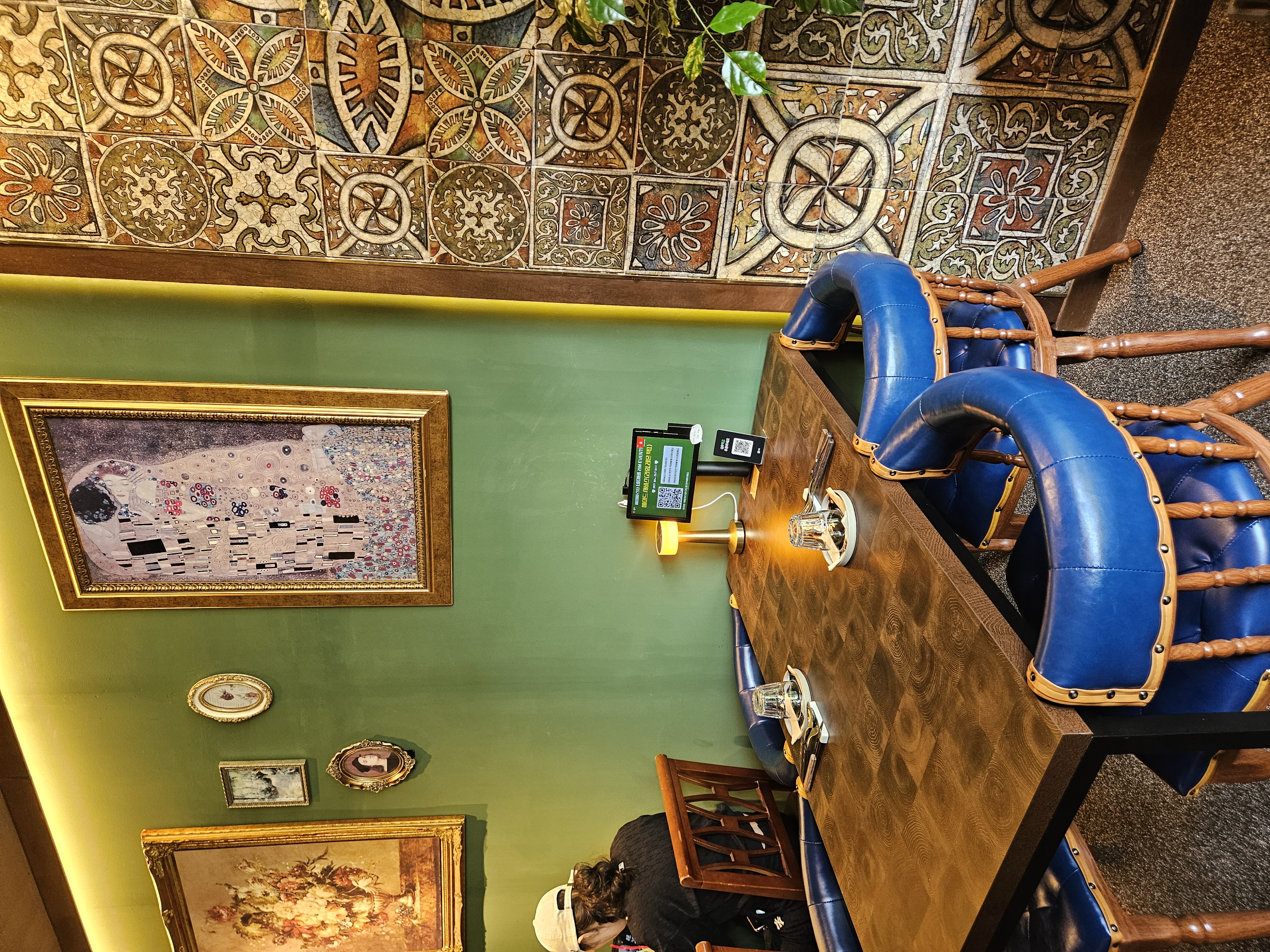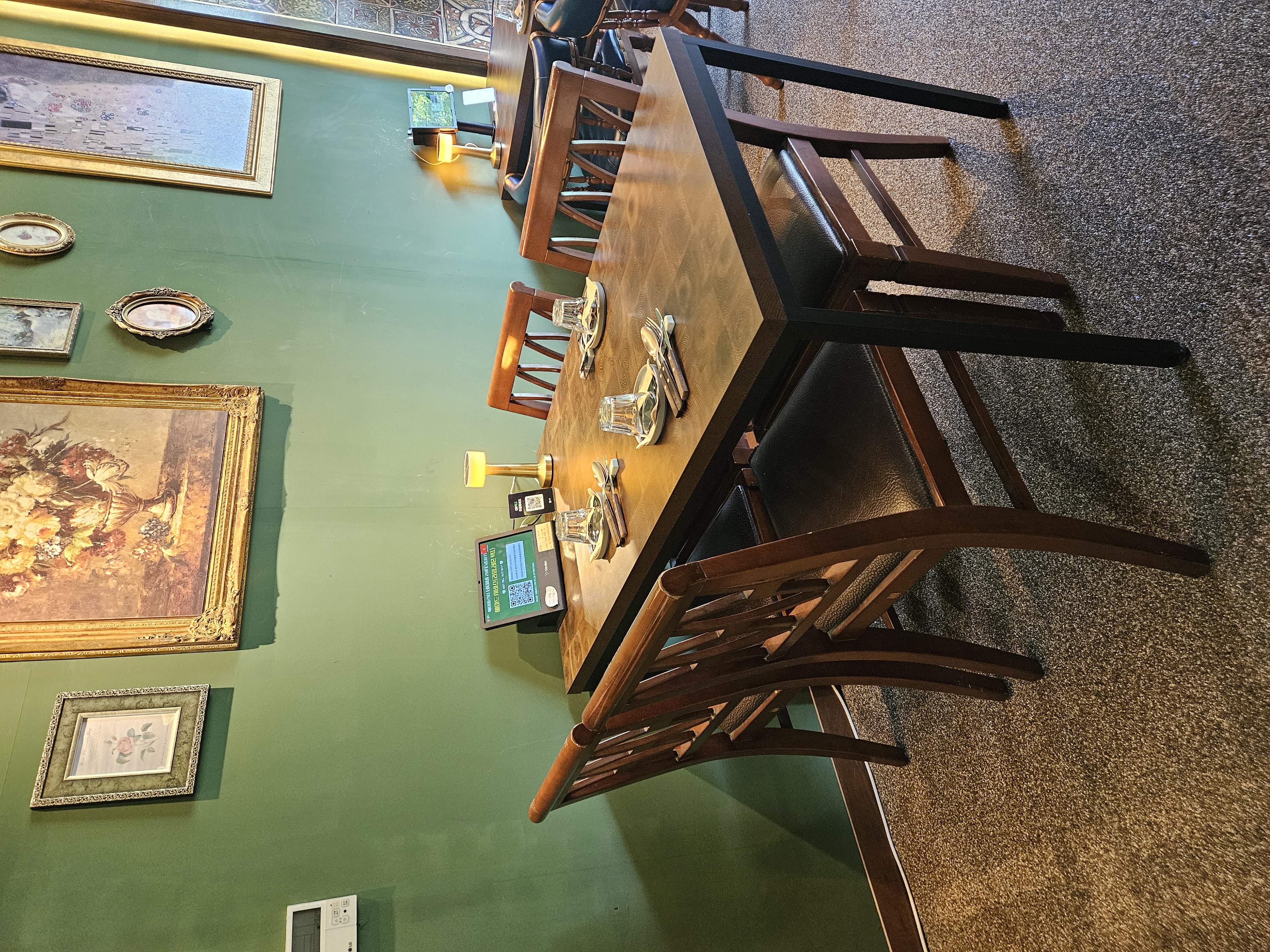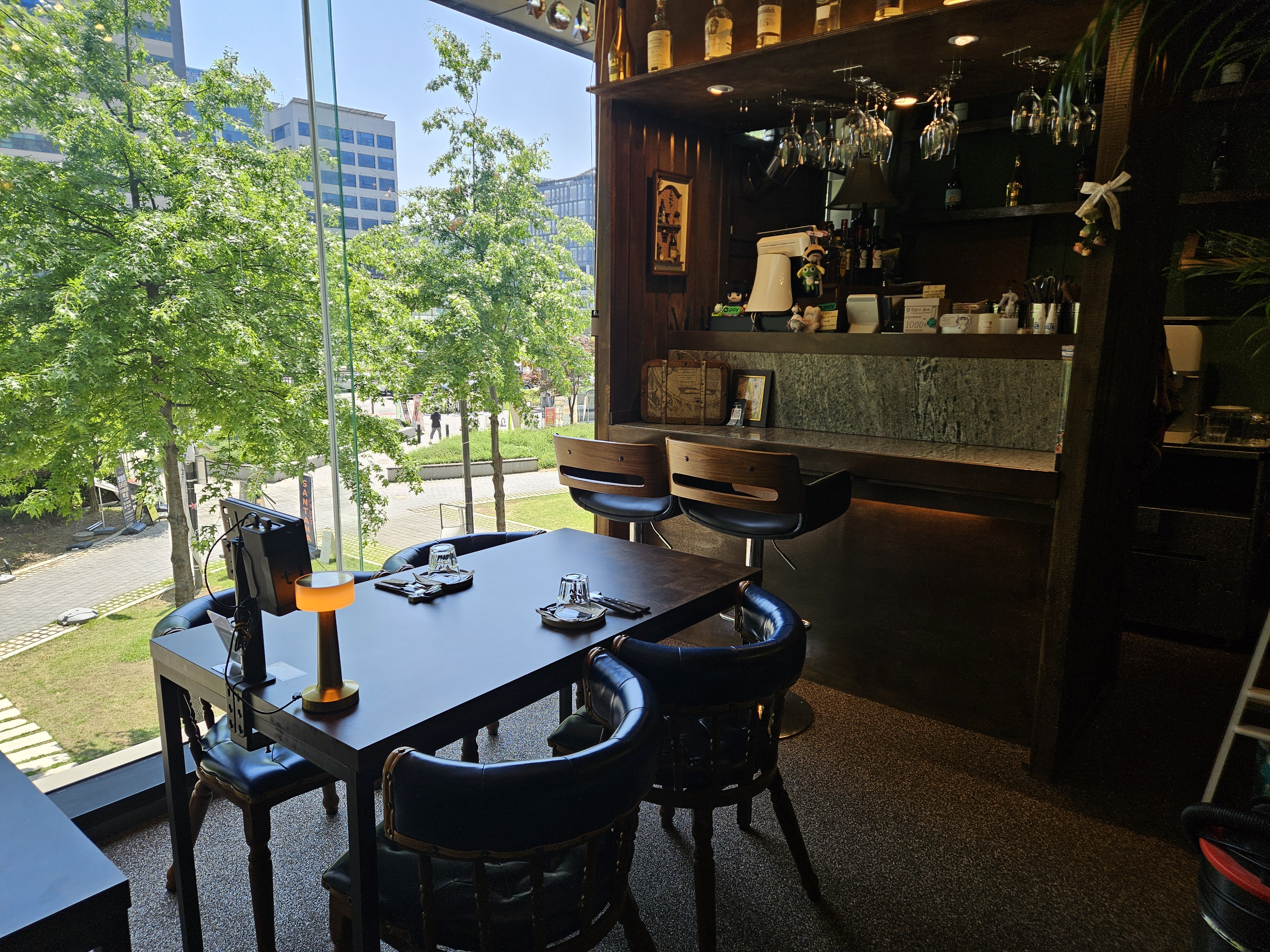 일단 들어가자 마자 작은 공간의 느껴지는 유럽풍의 인테리어가 좋았습니다. 뭔가 유럽 여행할 때 프랑스나 스페인 식당에서 본듯한 분위기가 나서 예전 생각을 회상하게 했습니다. 그리고 바깥 유리가 통창으로 되어 있어서 답답하지 않고 마곡 길거리를 보면서 식사를 할 수 있다는게 좋았습니다. 데이트 할 때 와도 손색이 없는 분위기였습니다.
