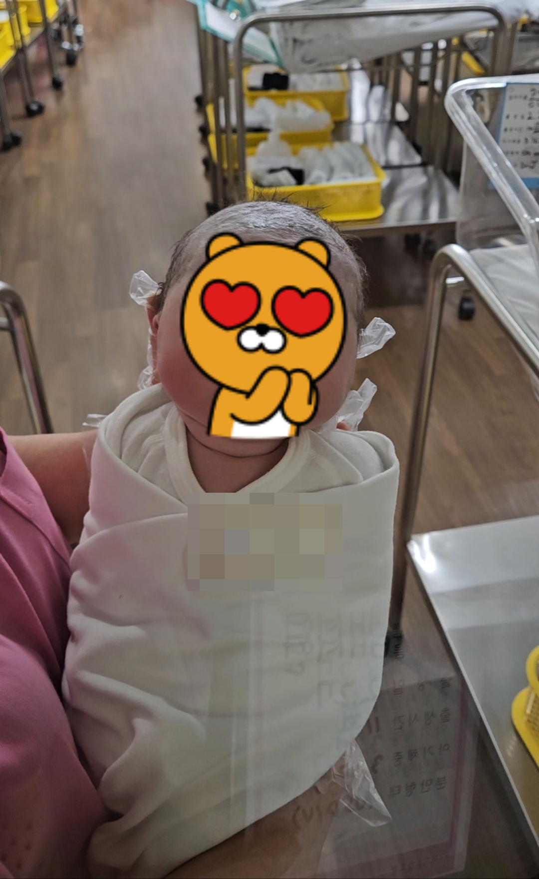그러고 한 시간 정도 지났을 때 신생아실에서 잠깐 내려오라고 콜이 왔습니다.
