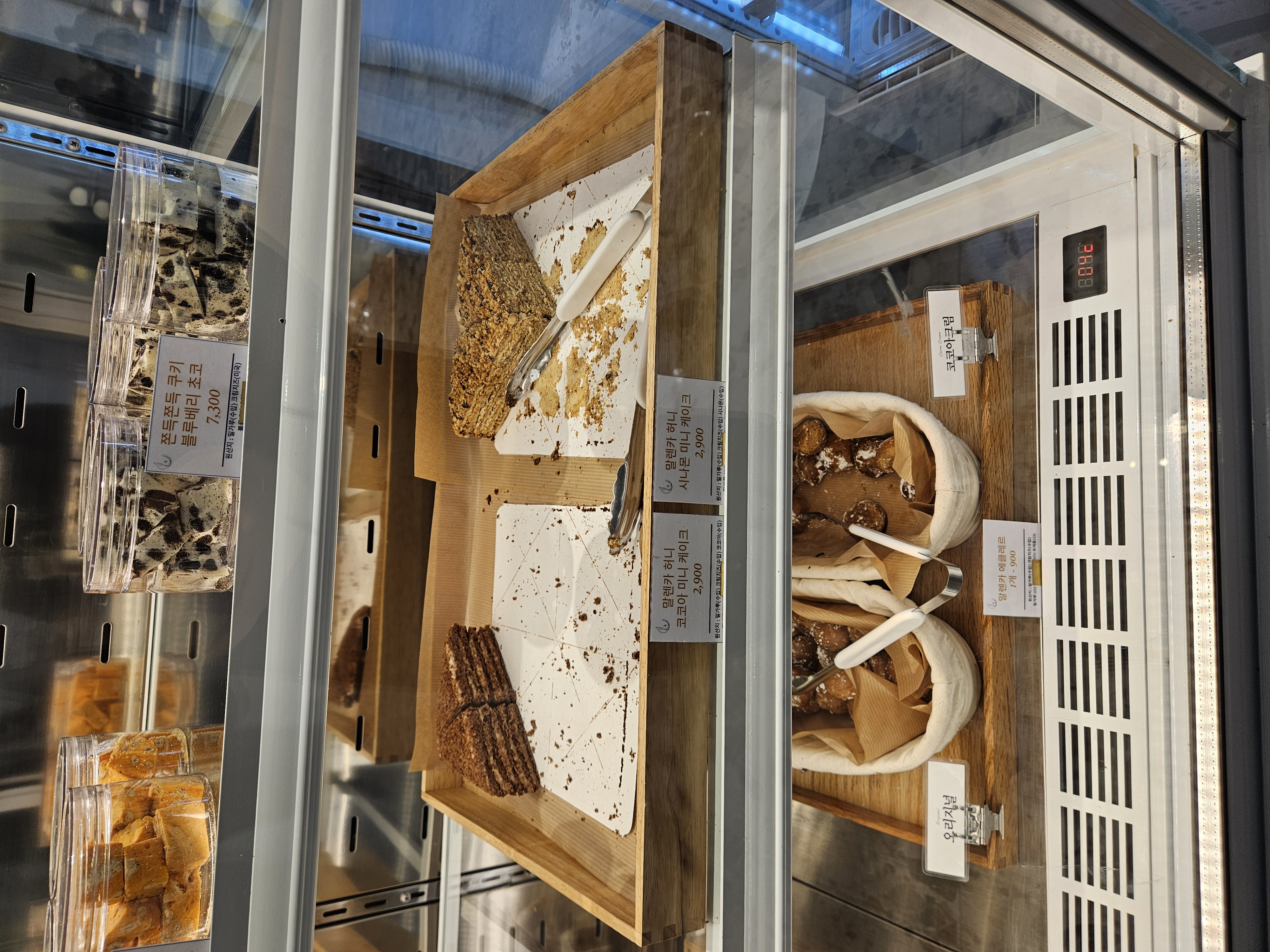 일단 들어가서 메뉴를 주문했습니다. 대표적으로 아메리카노 6,500원으로 음료가격이 구성되어 있습니다. 저희는 딸기라떼 (8,000원), 보스턴 소세지(6,700원), 말렌카 허니 시나몬 미니케이크(2,900원)을 주문했습니다~ 이 외에도 다양한 브런치, 빵, 디저트가 준비되어 있더라구요. 다만 저희가 간 시간이 늦은 시간이라 일부 빵들은 이미 다 팔렸더라구요ㅠㅠ