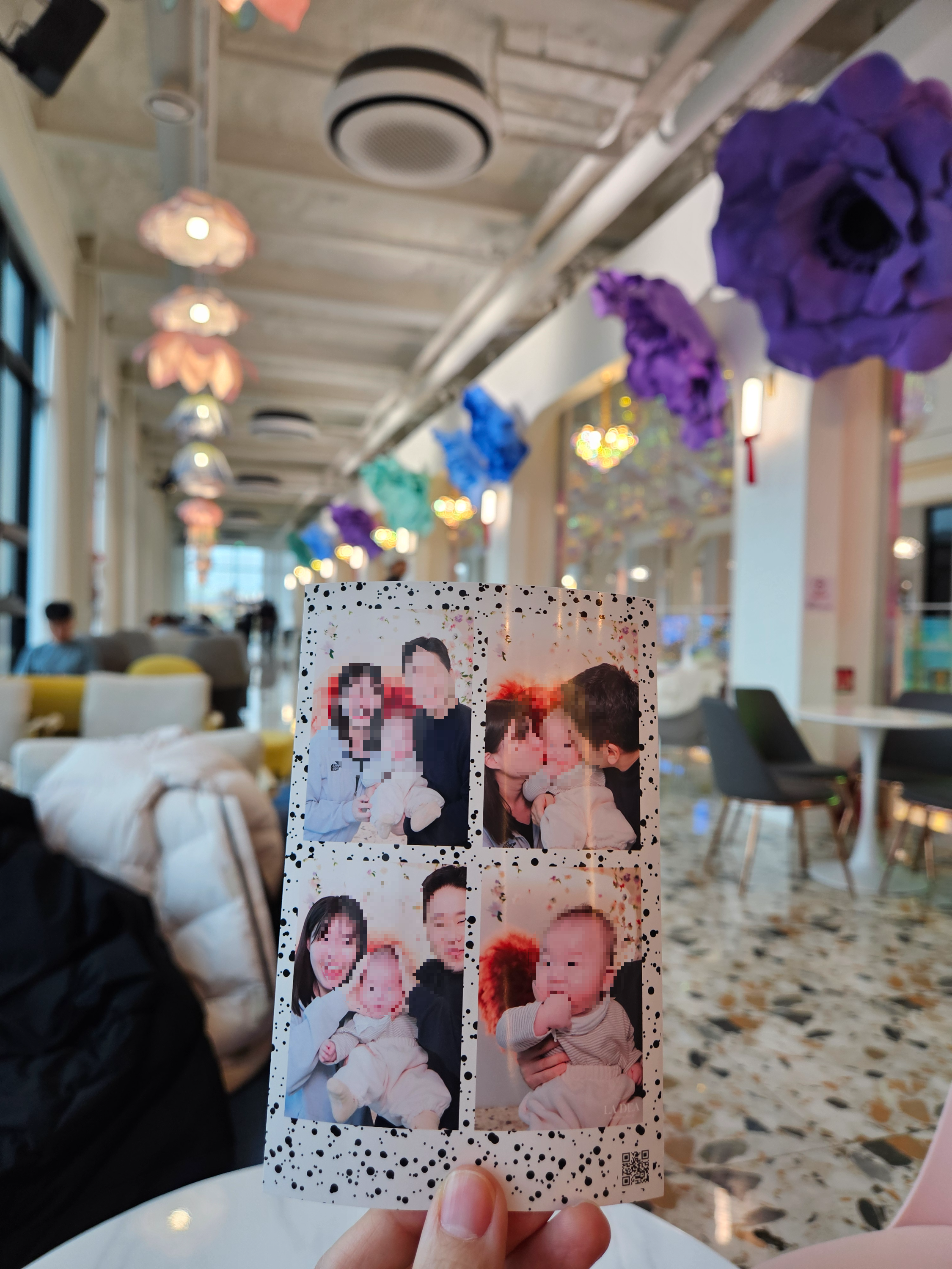 그리고 저희 자리 뒤에는 인생네컷처럼 사진찍는게 있는데 아내가 주호랑 같이 인생네컷찍자고 노래를 불렀는데 여기서 찍게되네요!!ㅎㅎ 가격은 5,000원이고 사진은 한장나옵니다~ 뒤에 배경으로 사진이 나오는데 생각보다 괜찮더라구요. 단 사람들이 왔다갔다 하는 통로라서 사람들이 조금 뜸해질 때 찍으시면 좋을 것 같습니다.