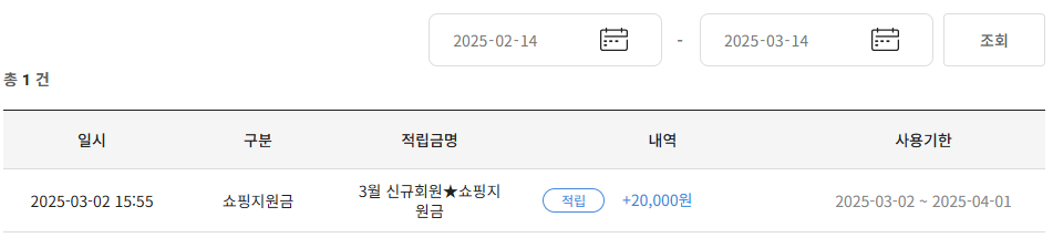 저도 가입을 하고 1달동안 사용할 수 있는 쇼핑지원금을 2만원 받았습니다. 아직 구매를 안했는데 4월이 되기 전에 어서 구매를 해야할 것 같습니다. 이 쇼핑지원금은 구매가액의 최대 5%를 사용할 수 있습니다.