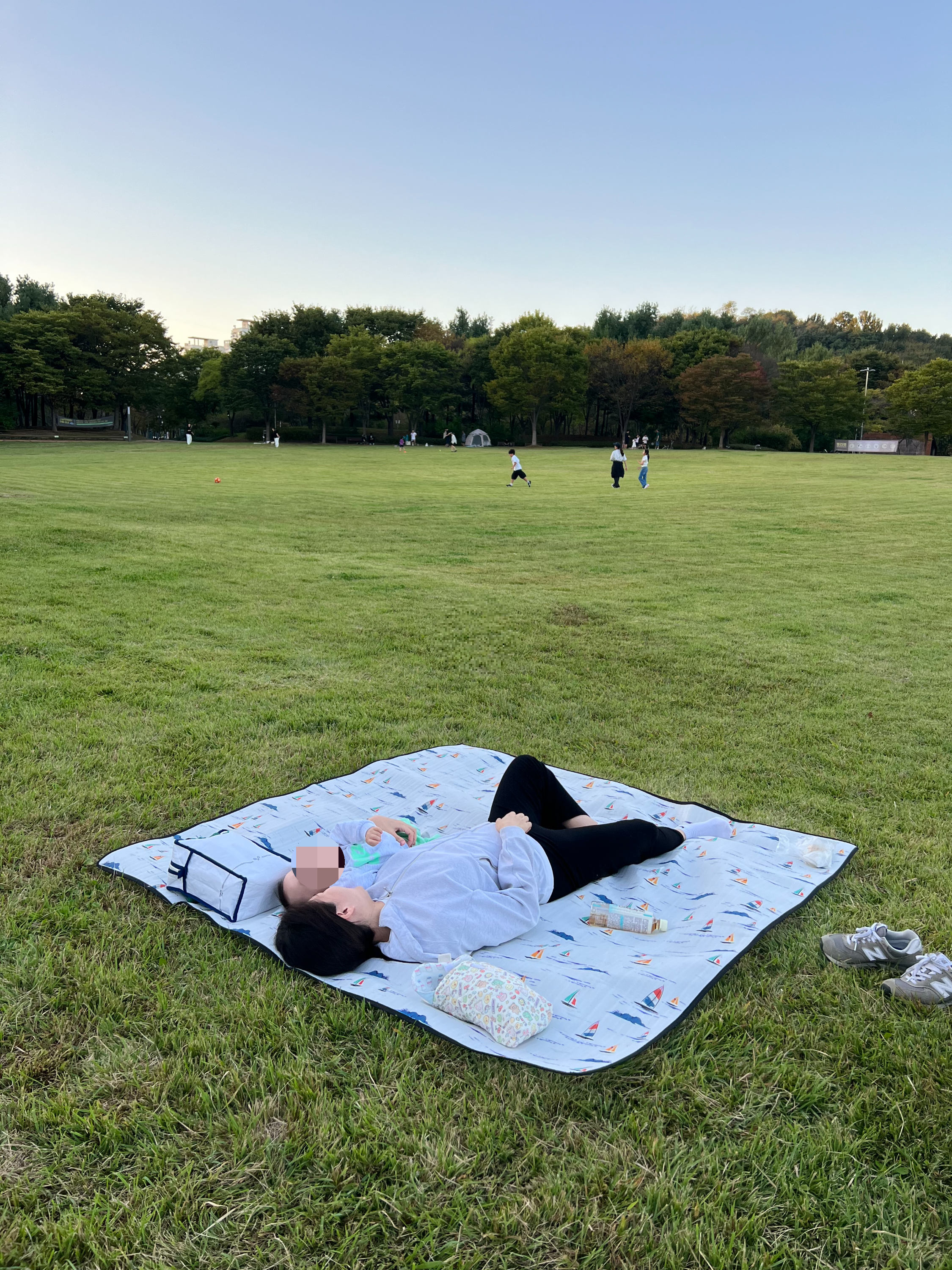 아내가 탁트인 그늘진 공간에서 돗자리피고 누워서 쉬고싶다고 오늘 말했었는데 신기하게 그런 공간을 찾았다.