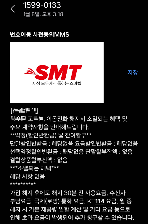저는 SKT 스마텔이었기 때문에 SKT 알뜰폰 번호인 1599-0133 으로 전화해서 번호이동 사전동의를 완료했습니다. 하지만 사전 동의 후에 문제가 생겼었는데요.