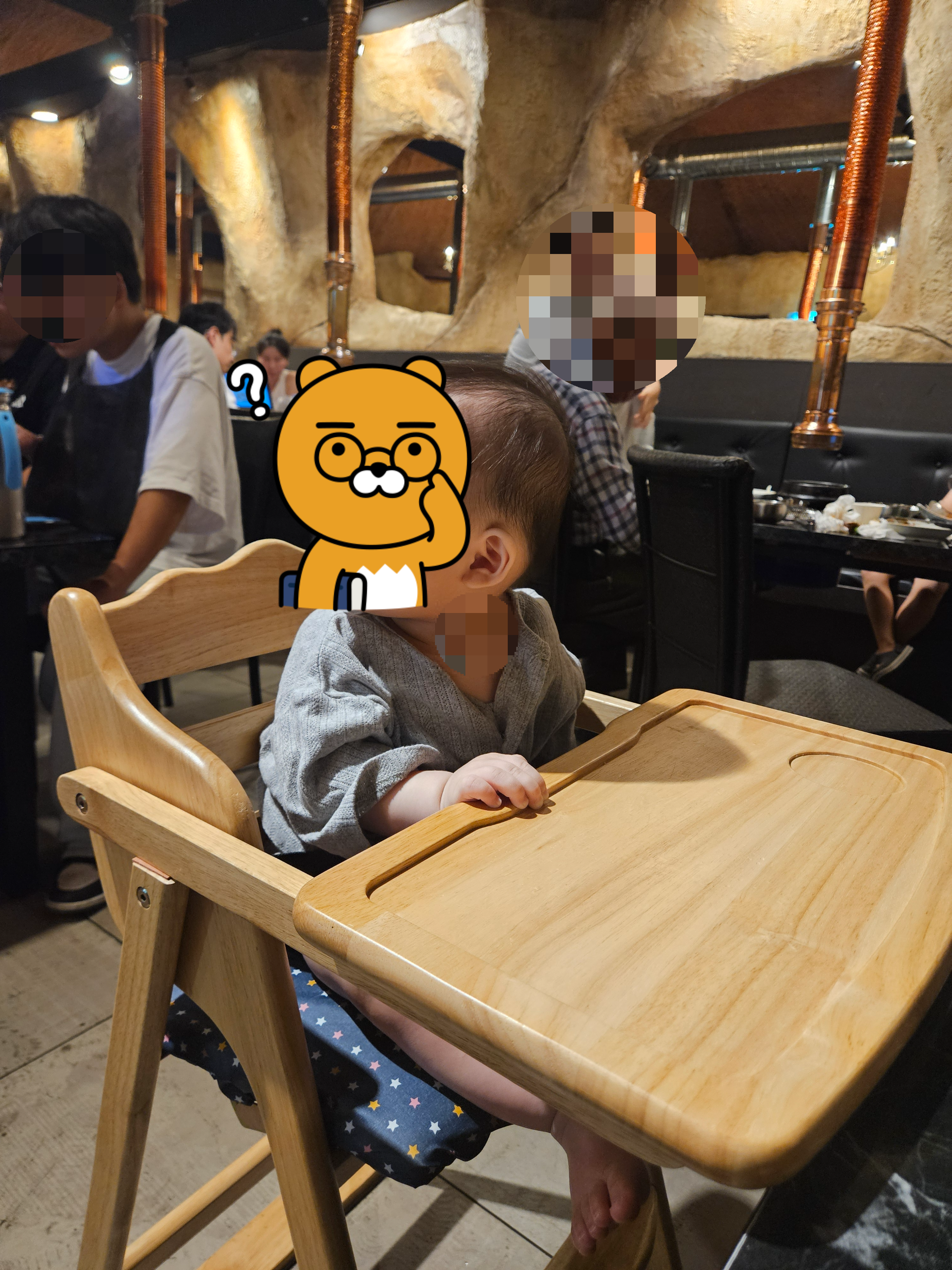 좌석을 미리 세팅해주셨고 가족 단위의 손님들이 많이 오다보니 아기의자도 구비되어 있다. 내부는 갈끔하고 주문은 테블릿으로 할 수 있다. 근데 우리 좌석은 테블릿이 고장나서 직접 오셔서 주문을 받아주셨다. 우리 애기 주변이 신기한듯 요리조리 둘러보고 있는중이다.