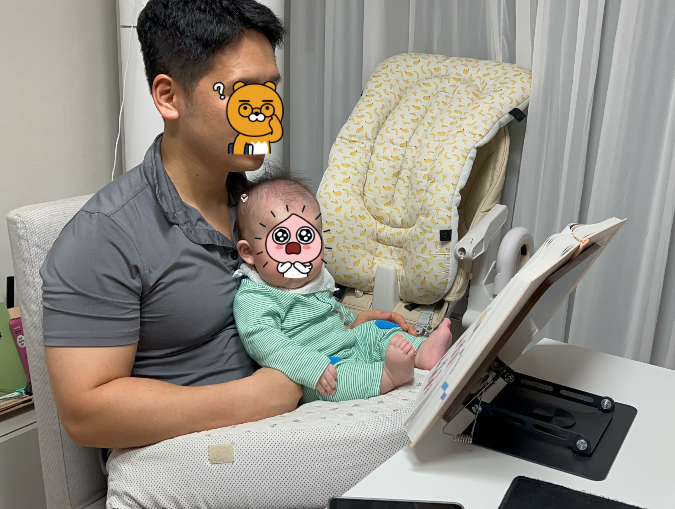 아, 그리고 저는 책을 읽어줄 때 독서대를 사용하는데 두꺼운 책들은 독서대에 얹어두고 읽어야지 손으로 들고 읽으려고 하면 너무 힘들더라구요. 높이조절 되는 책 독서대를 찾다가 발견했는데 몇 달 사용하고 있는데 괜찮은거 같아서 링크를 올려둡니다~