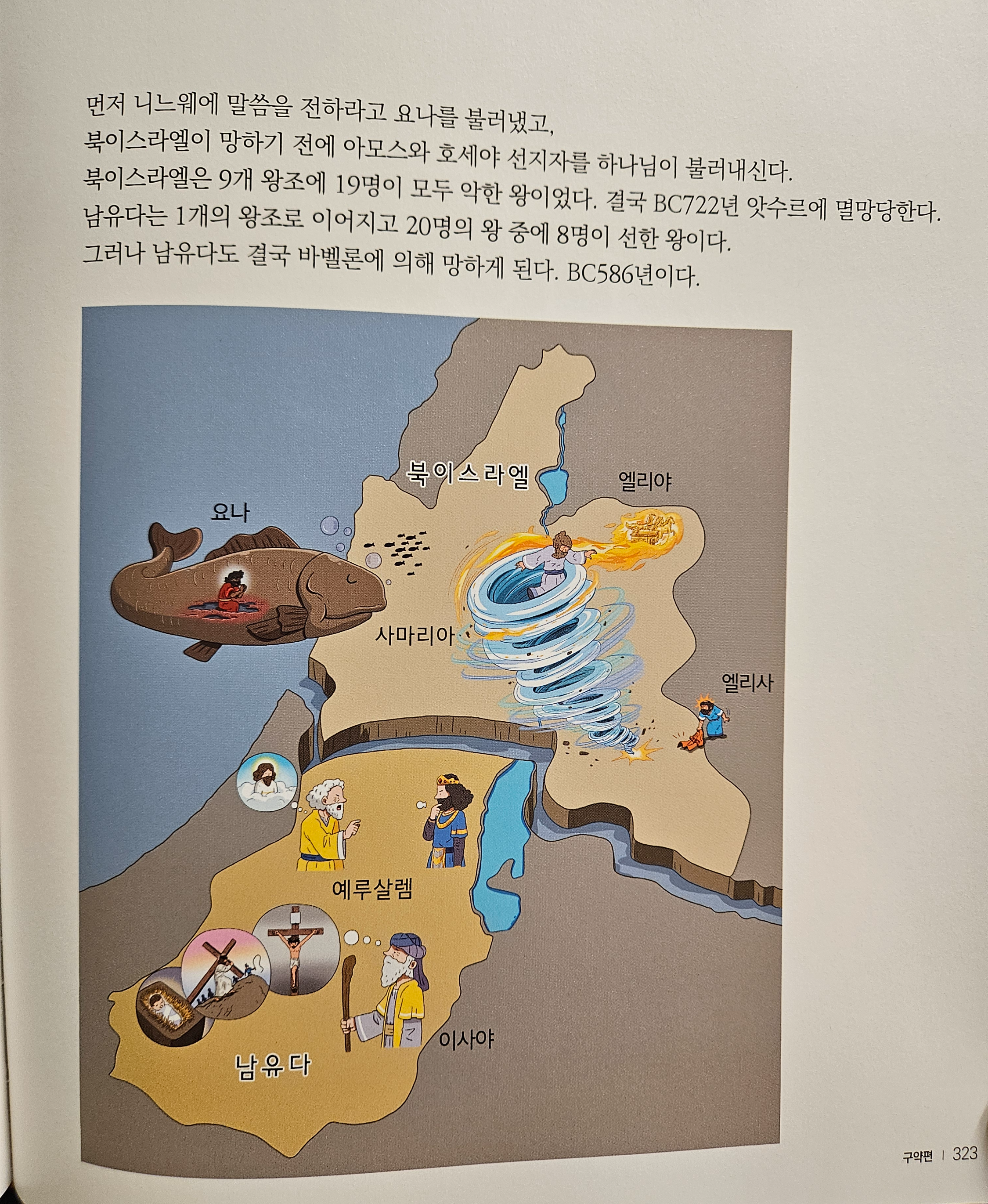 책은 구약과 신약을 다 담고 있으며 저렇게 성경의 이야기를 그림으로 그려내어서 시각적으로 볼 수 있어 성경을 조금 더 잘 이해할 수 있게 해줍니다. 출애굽한 저런 지도들을 그냥 성경으로 볼 수 없는데 지도와 경로를 알려줌으로써 어른인 저도 조금 더 이해가 잘되더라구요.
