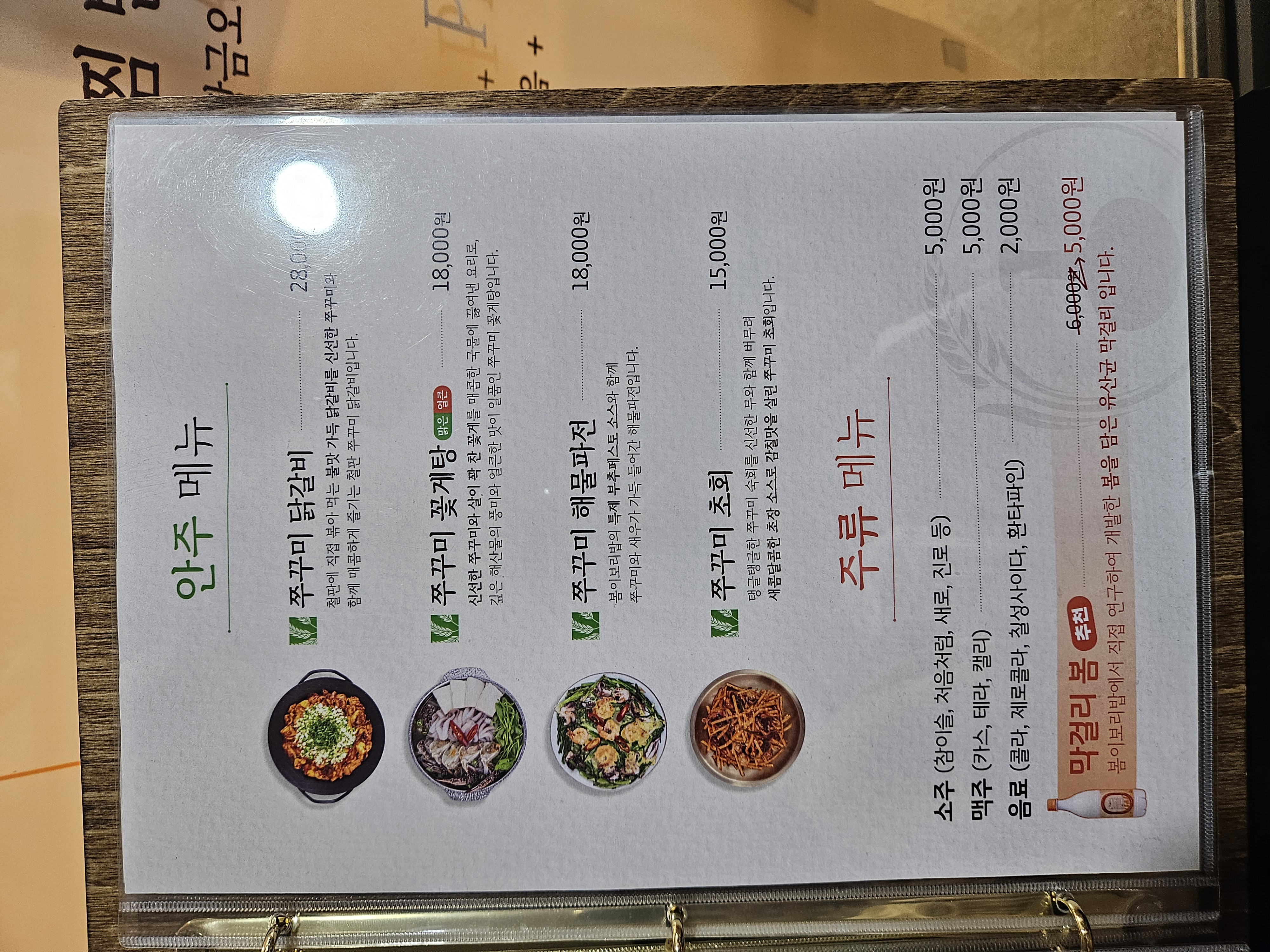 저희는 5인세트를 시켜서 먹었습니다. 5인 세트에는 꼬막무침, 쭈꾸미볶음, 고등어구이, 간장게장, 돼지갈비찜, 미나리전이 메인반찬으로 나옵니다. 이 메인음식은 리필이 안되고 청국장과 5색나물은 리필이 가능합니다~