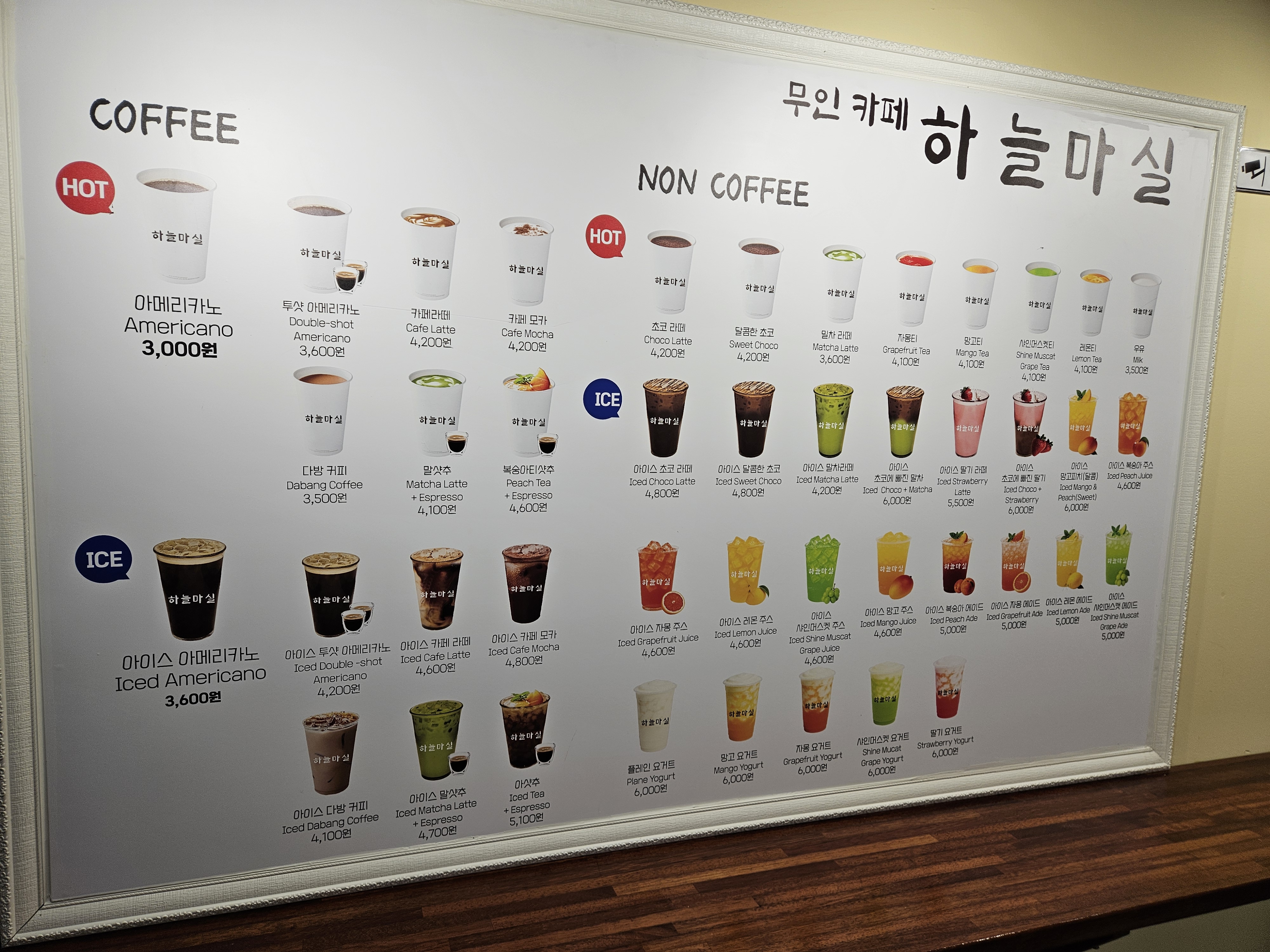 무인이라 음료가격이 약간 저렴하다. 걷다가 커피한잔 해도 될 것 같다.