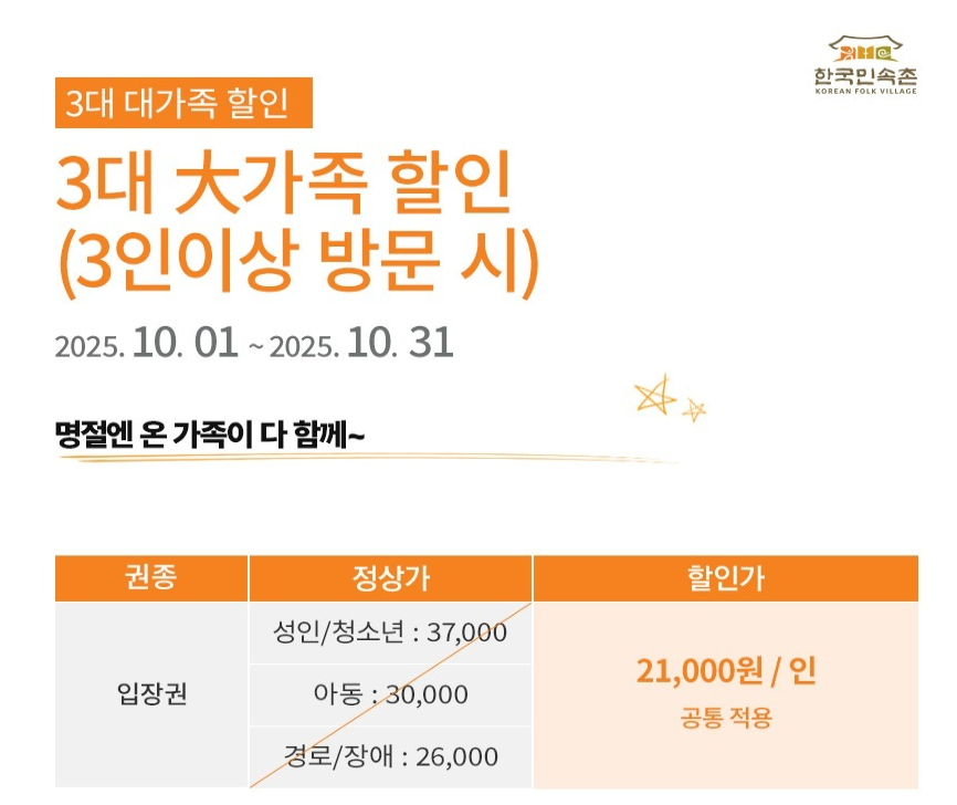 한국민속촌 사이트에 가면 할인받을 수 있는 조건들이 여러개 있다.