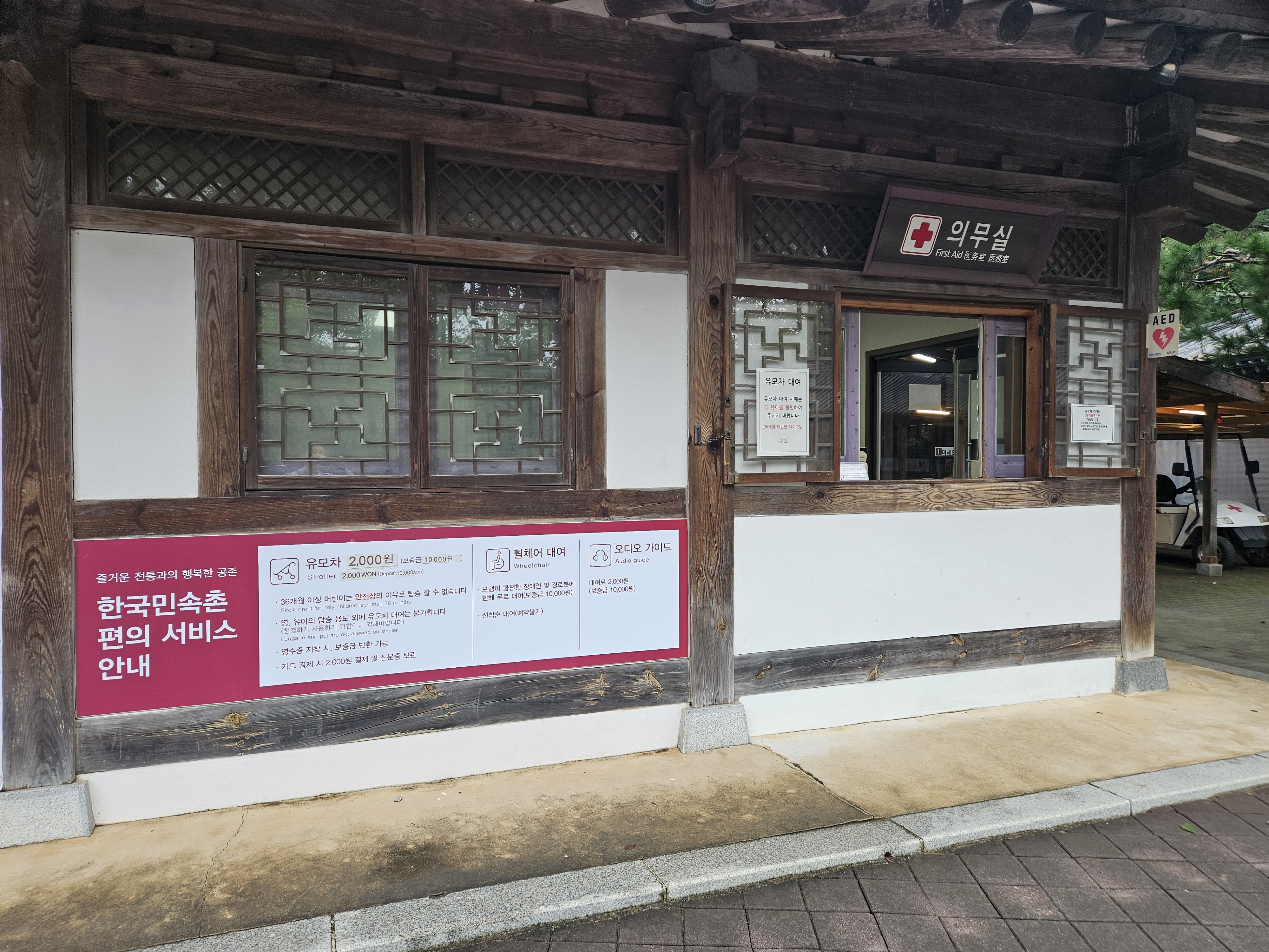 그 옆에 의무실에서 유모차를 대여할 수 있는데 보증금 1만원에 대여료 2천원이 포함되어 있다.