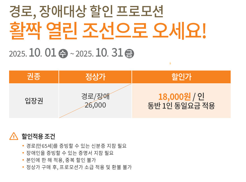 가족들이 많이 간다면 3대 대가족 할인을 받거나 오후시간대에 간다면 오후 입장할인을 받으면 좋을 것 같다.