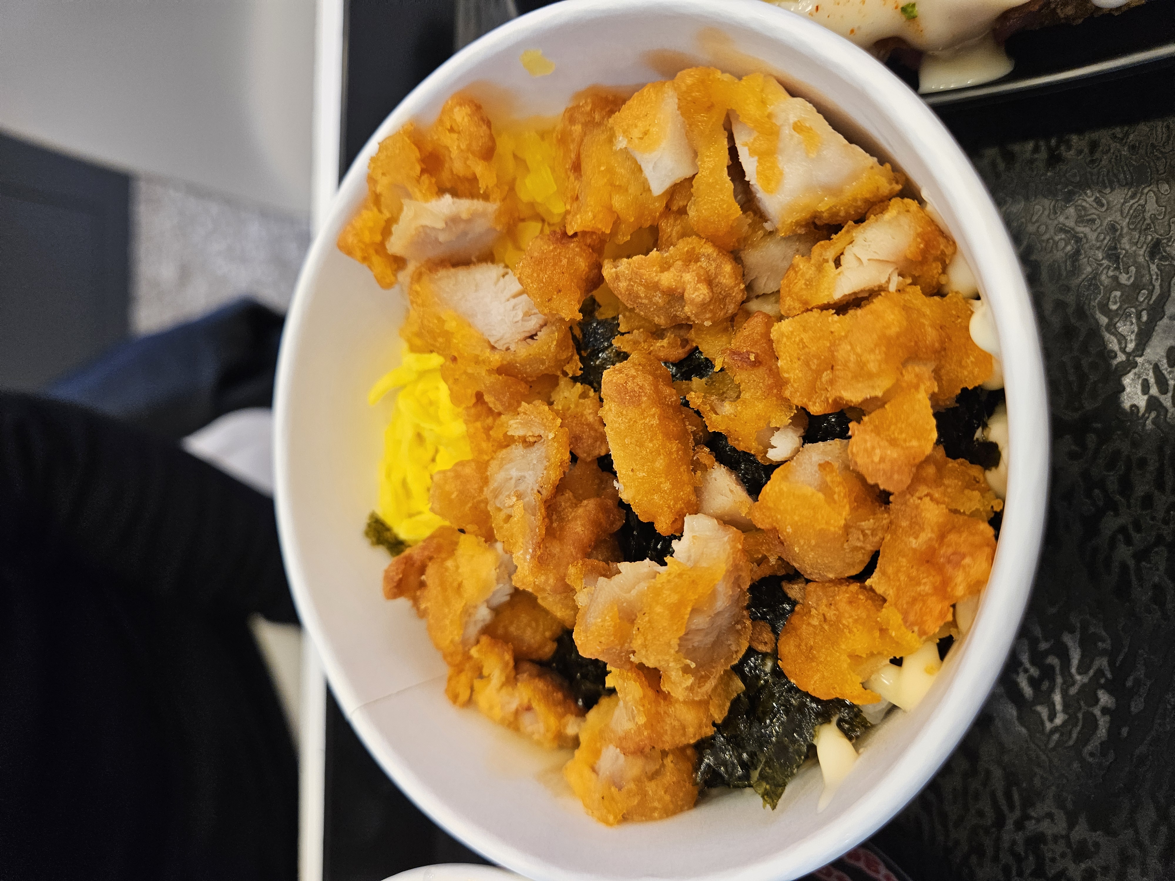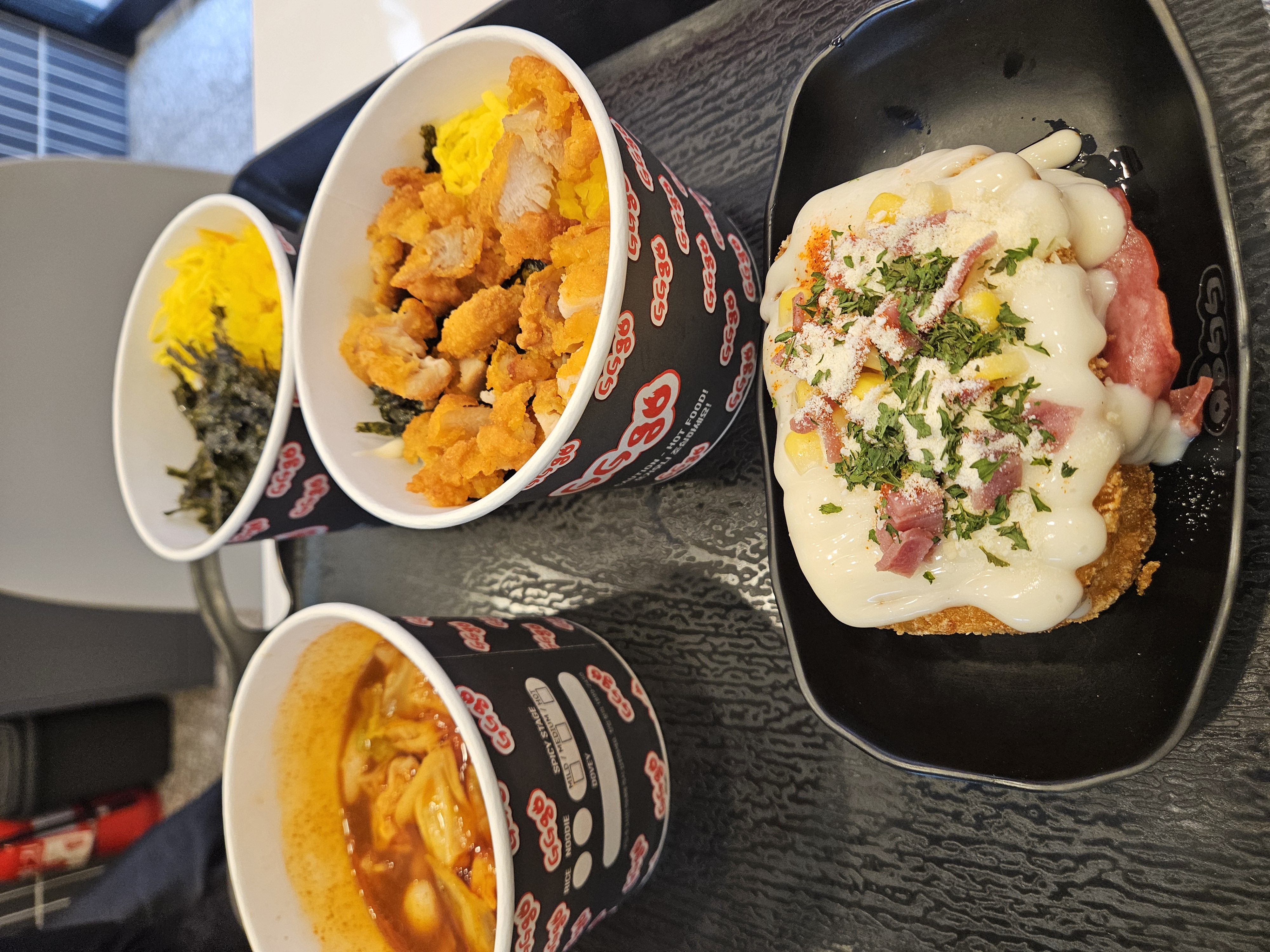 드디어 나온 더비라이스 컵밥입니다. 먹음직스러운 치킨마요와 제육컵밥, 떡볶이네요!! 소스가 밑에 있으니 밑까지 싹싹 비벼주셔야합니다~