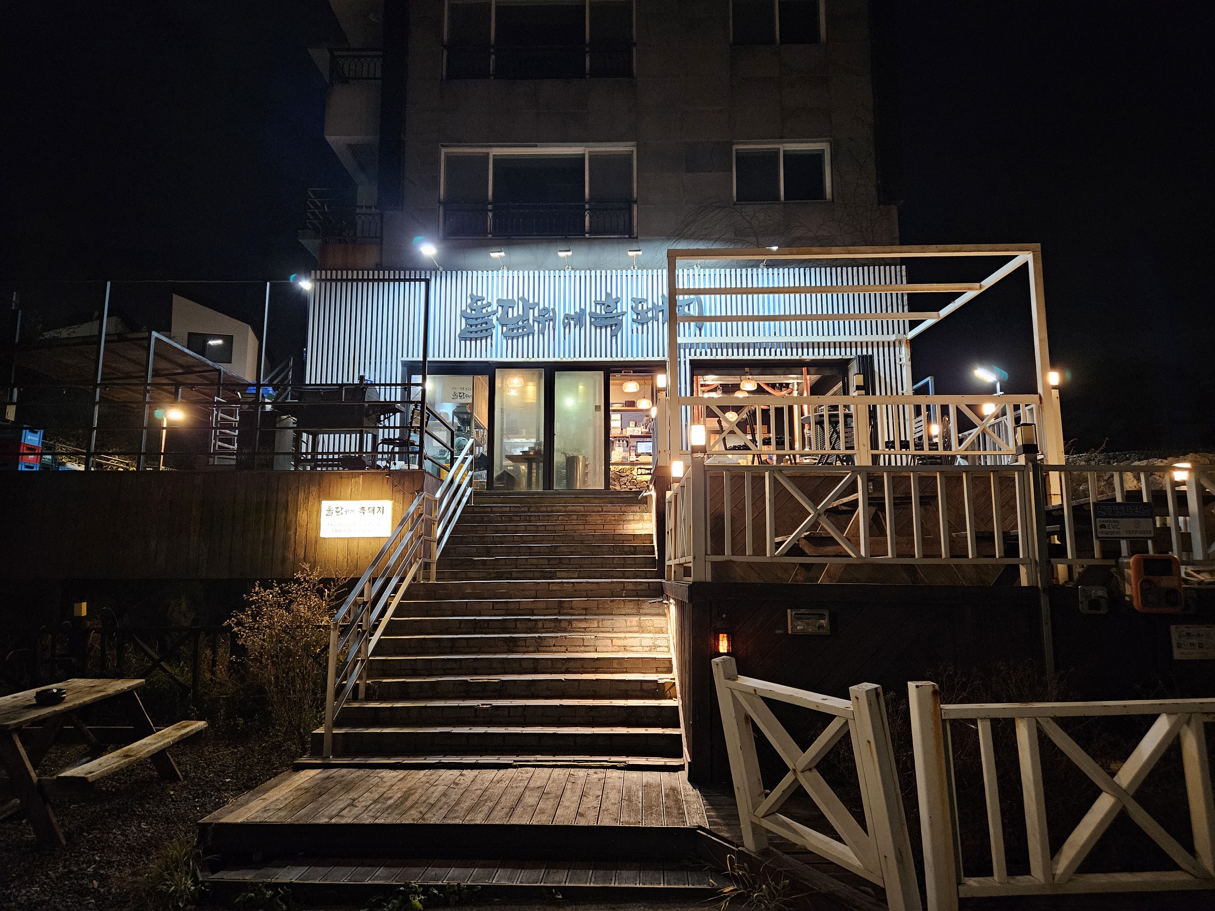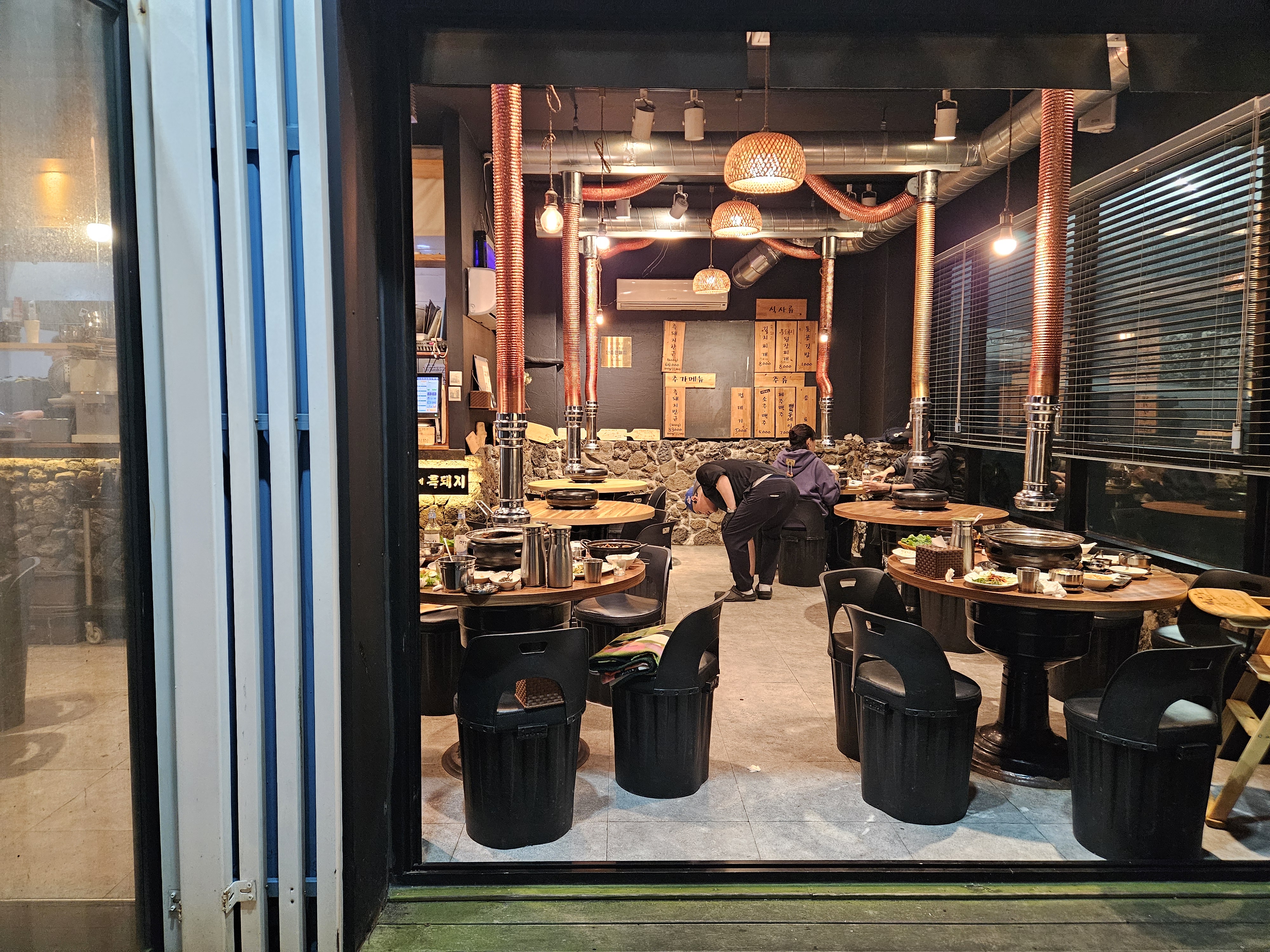 해가 지기 전에 왔다면 푸른 제주 바다를 보면서 고기를 먹는 낭만이 있었을 것 같다.