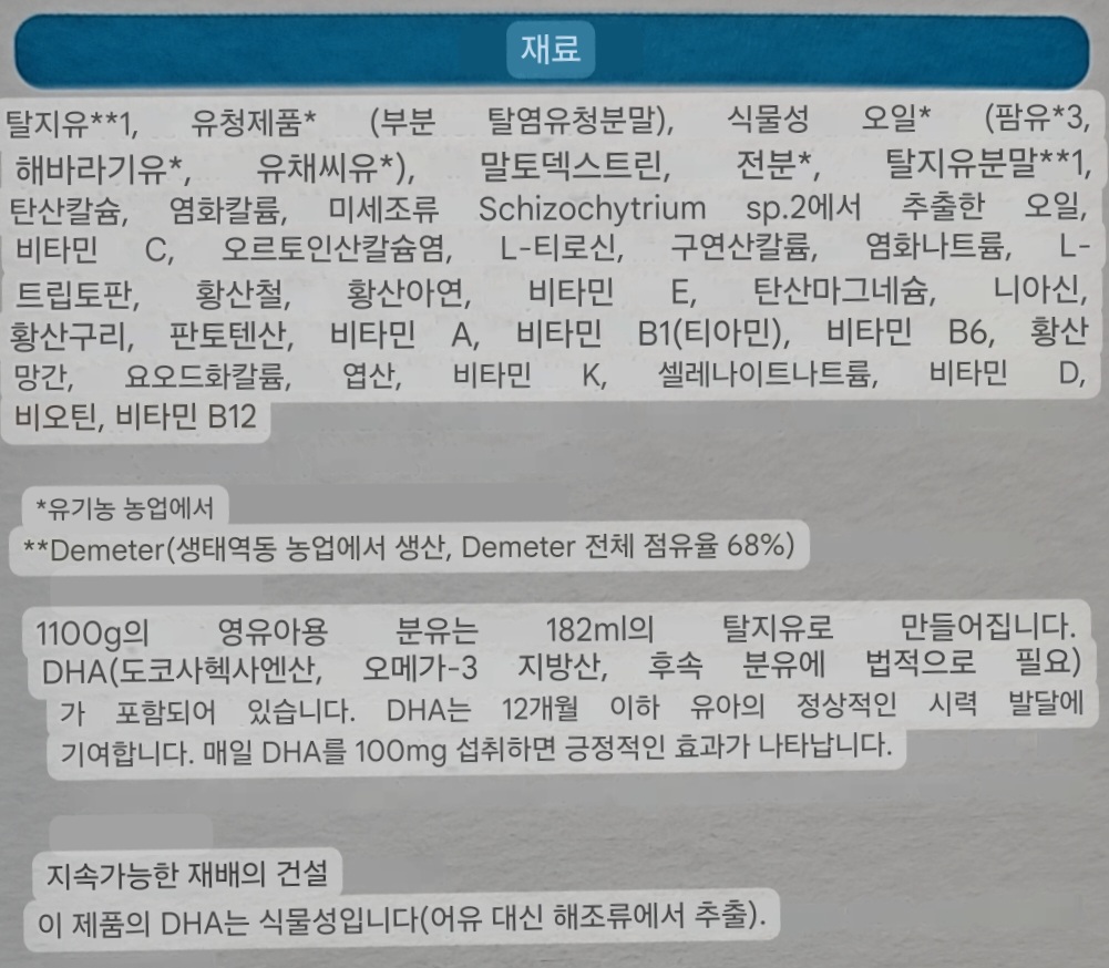 독일에서 직구하는 홀레의 성분은 위와 같습니다. 구글번역이 잘되어 있더라구요. 전분이 들어가 있는데 저희 아기는 전분에 대한 부작용은 없는 것 같아서 다행입니다. 변비기도 약간 있는 것 같더니만 1주일 정도 지나니 변도 잘보고 있습니다. 이제는 분유와 이유식을 같이하고 있는데 주호가 이유식도 잘 먹어줬으면 하는 바램입니다. 물론 아기마다 다르겠지만 게워냄은 시간이 지나면 해결된다는 결론은 얻었습니다.