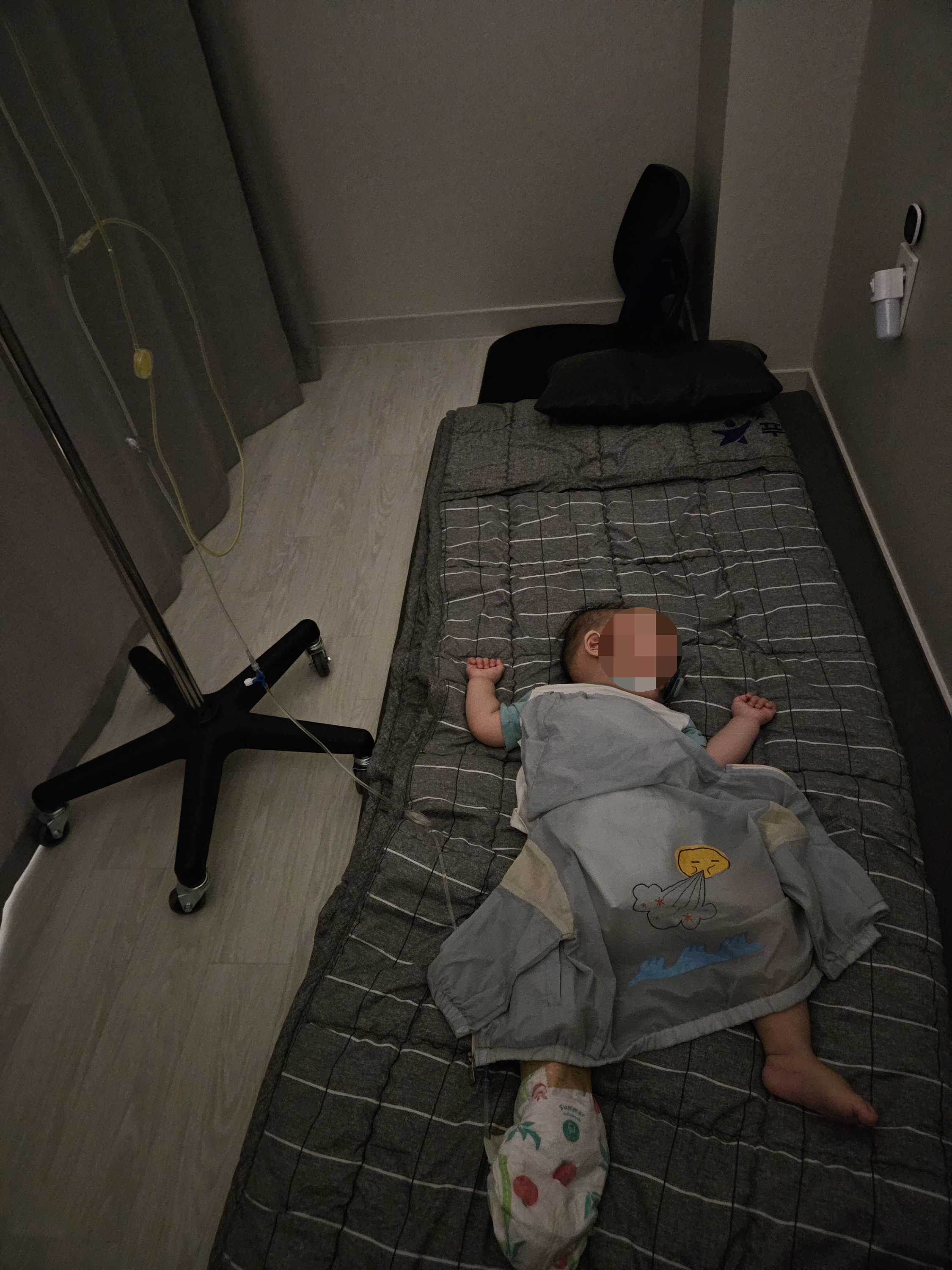 토요일 새벽에 주호가 울어서 가족 모두가 다 깼다. 기저귀를 보니 설사를 했어서 치워주고 다시 재울려고 했는데 바로 자지 않고 약간 보챘었다. 아내가 또 걱정이 되서 다시 병원에 가보자고 했다. 나는 병원에 가도 할 수 있는게 없을 거 같아서 별로 가기는 싫었지만 일단 다음날 아침에 병원에 갔다. 이번에는 피검사를 진행해서 염증 수치를 확인하고 피를 뽑는김에 수액도 같이 맞았다. 다행히 염증 수치는 높지 않아 입원하지 않고 집에서 지켜보기로 했다.
