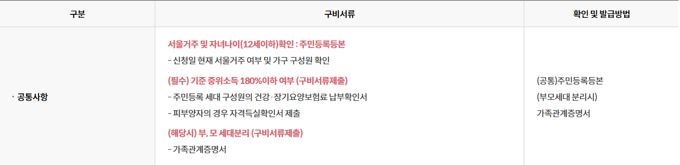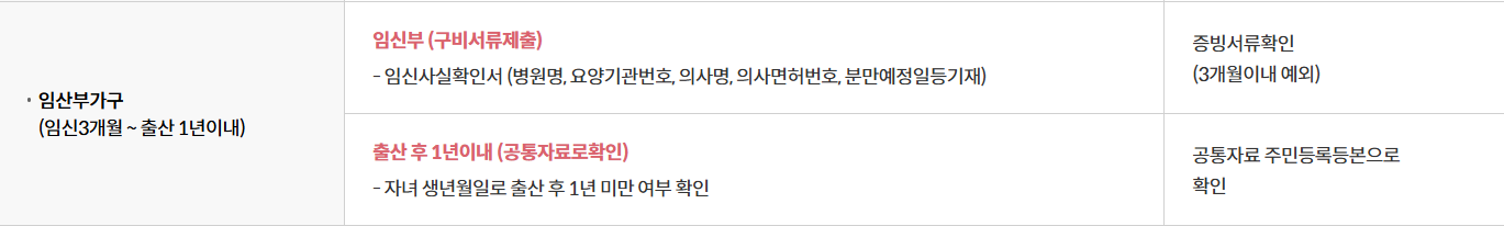 임산부 가구의 필요서류는 아래와 같습니다.