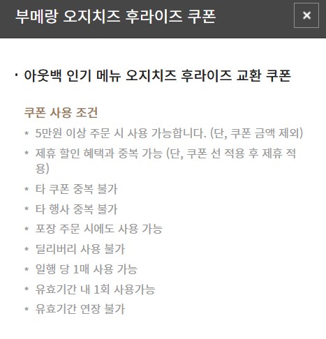 그 대신 부메랑 오지치즈 후라이즈(10,900원) 쿠폰이 생겼더라고요.