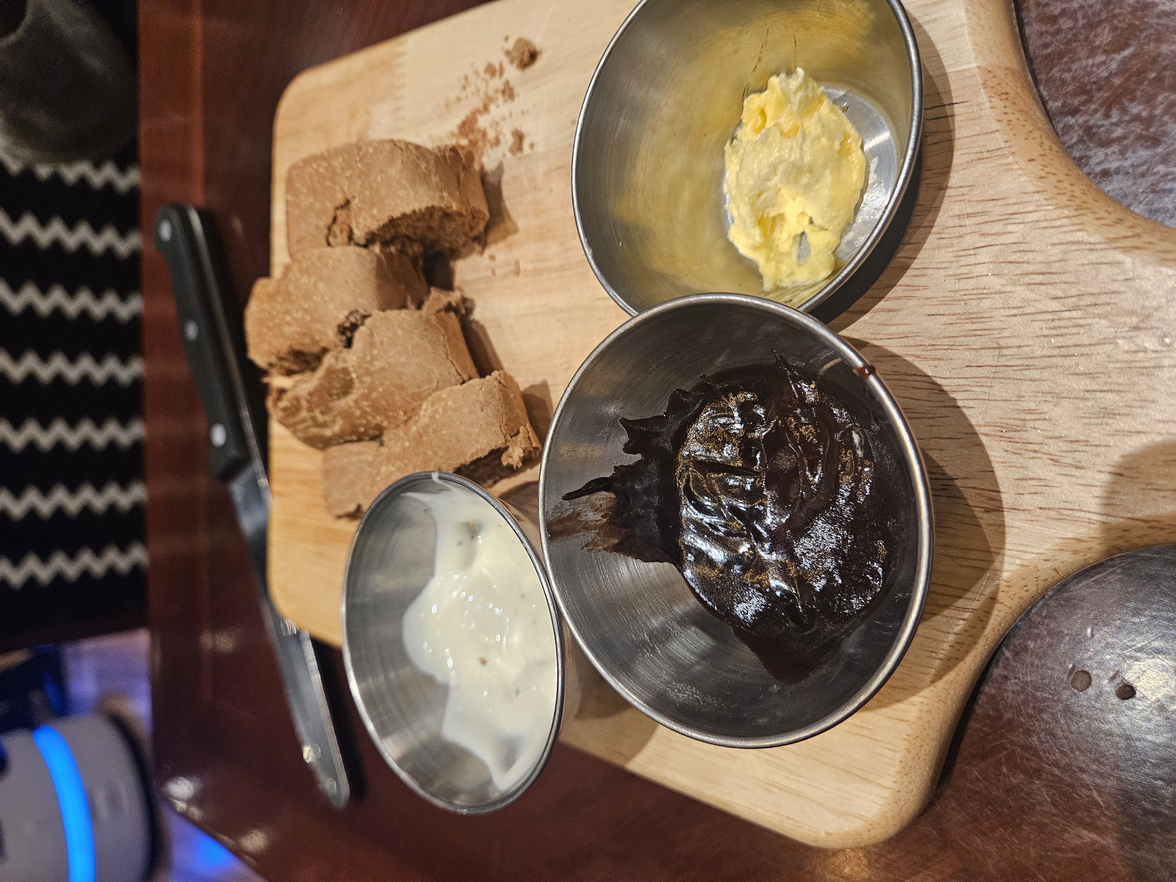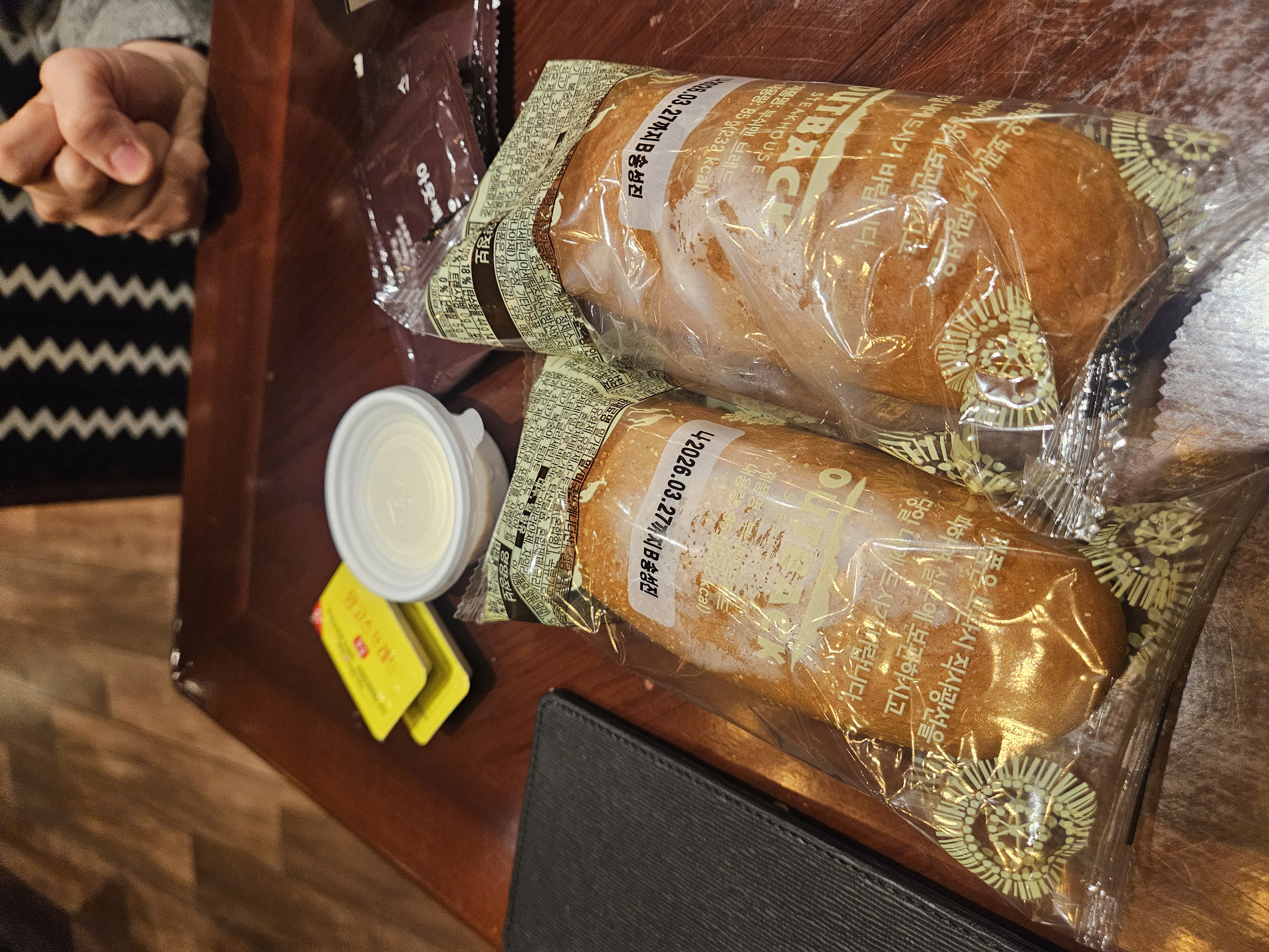 후식으로는 커피 한잔과 인당 하나씩 포장해 갈 수 있는 브레드와 소스를 가지고 나왔습니다.